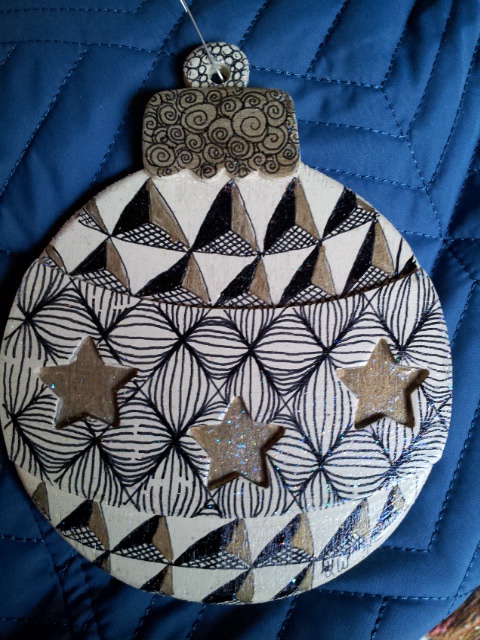 I took a break on Saturday and took a Zentangle class from a dear friend, Elisa Murphy a Certified Zentangle Teacher. Her business is called Elisa’s Now and Zen. The ornament I tangled is shown below. The class was held at Artworks Studio in Hopedale, MA. Check out the awesomeness of both these sights.
