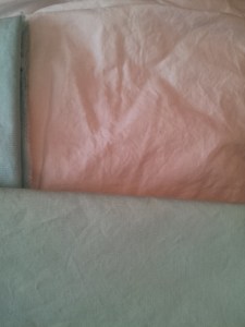 …Back to focusing on quilting.  Do you per wash your fabrics?  I usually do.  Especially if there are any that I think will run.  I’ve got a stack of washed fabric.  The reason I’m showing you is to see the difference in wrinkles between the ones I pulled out of the dryer before they were completely dry (green) and the other (white) was left in until dry.  LESS wrinkles if taken out while slightly damp!   In taking that one step further…