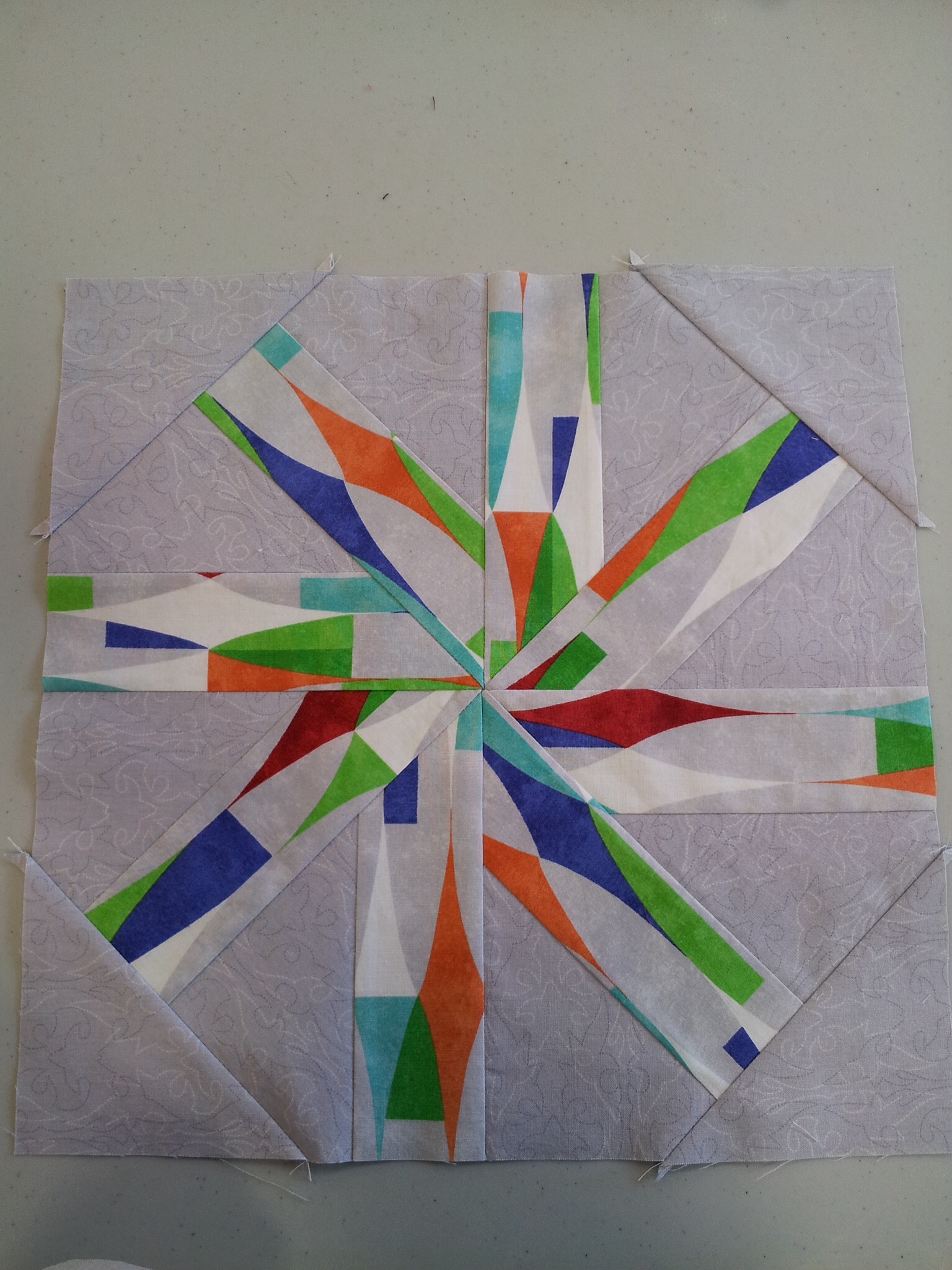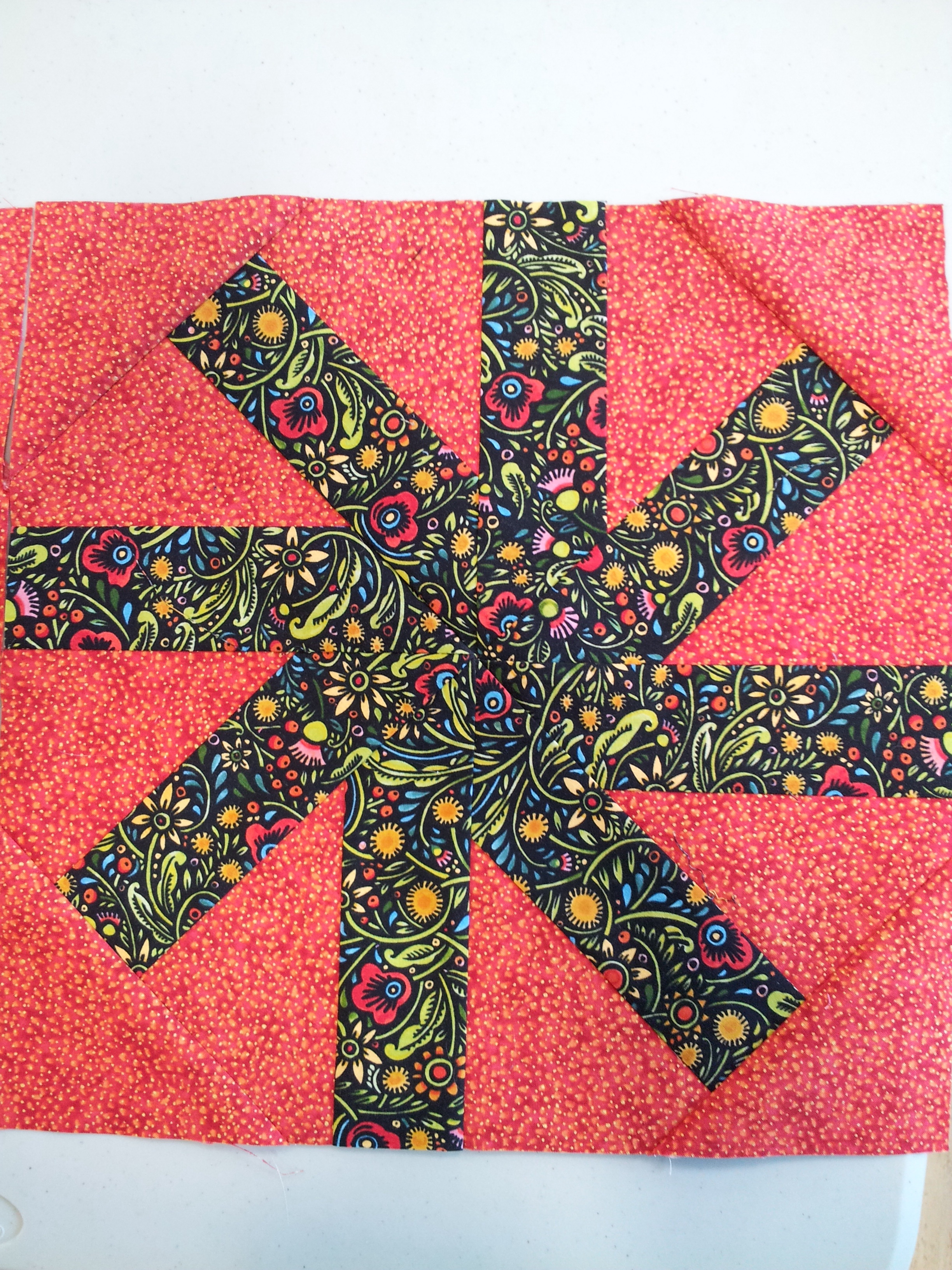 great twirly blocks and so useful to see the comparison pic for cream/white batting.