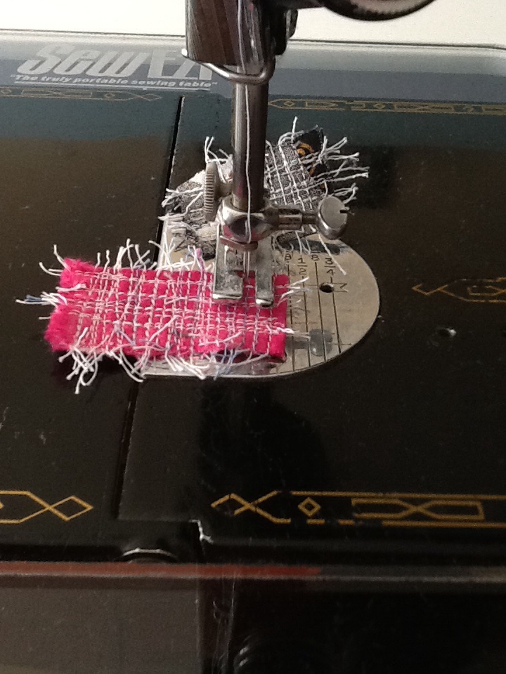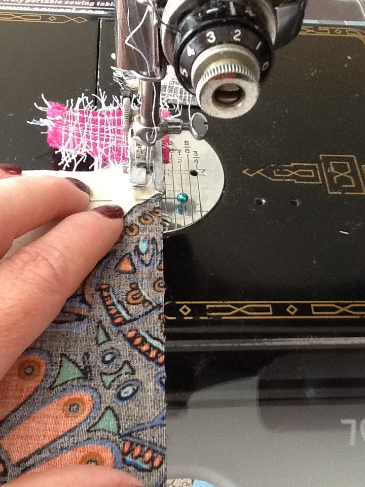#1 – Use a starter piece of fabric to begin a line of stitching.