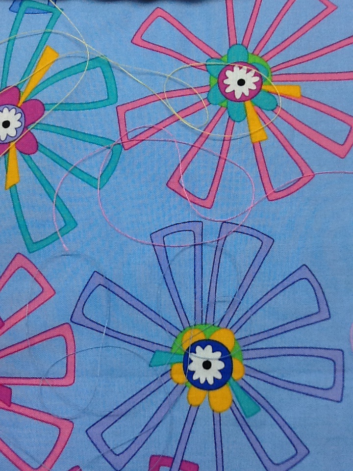 The quilt I posted last week is almost done! Picking thread is part of the finishing process. So is choosing the quilting design. There are many considerations. Do you want the quilting and thread to be the focus of the quilt or blend? The picture below is how I audition threads. Lay them over the fabrics to help make the decision.