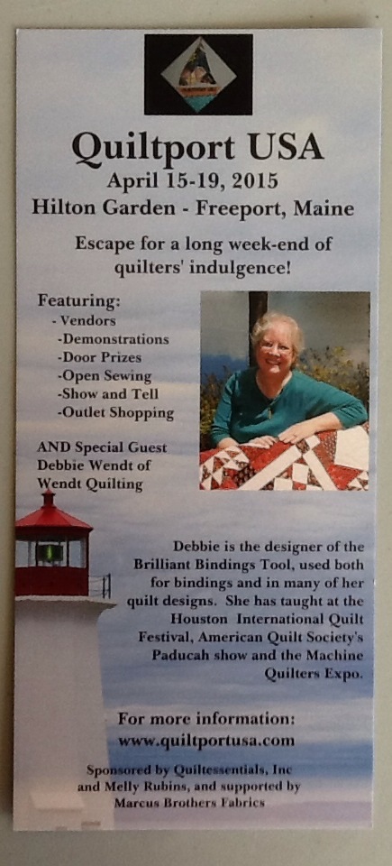 I’m the featured “star” for Quiltport USA! I’ll be vending on Friday and speaking that evening to their attendees. The vendor area is open to the public from 9-5. It is at the Hilton Garden in Freeport, Maine. If you are local, come on by!