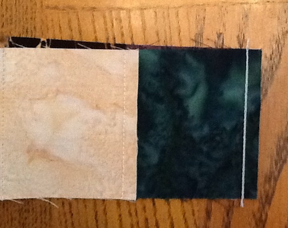 Below is the little bit we took in on many of the seams. Some we took in 1/8″ and others just a thread width. Over the entire length of 40+ squares it is not noticeable!