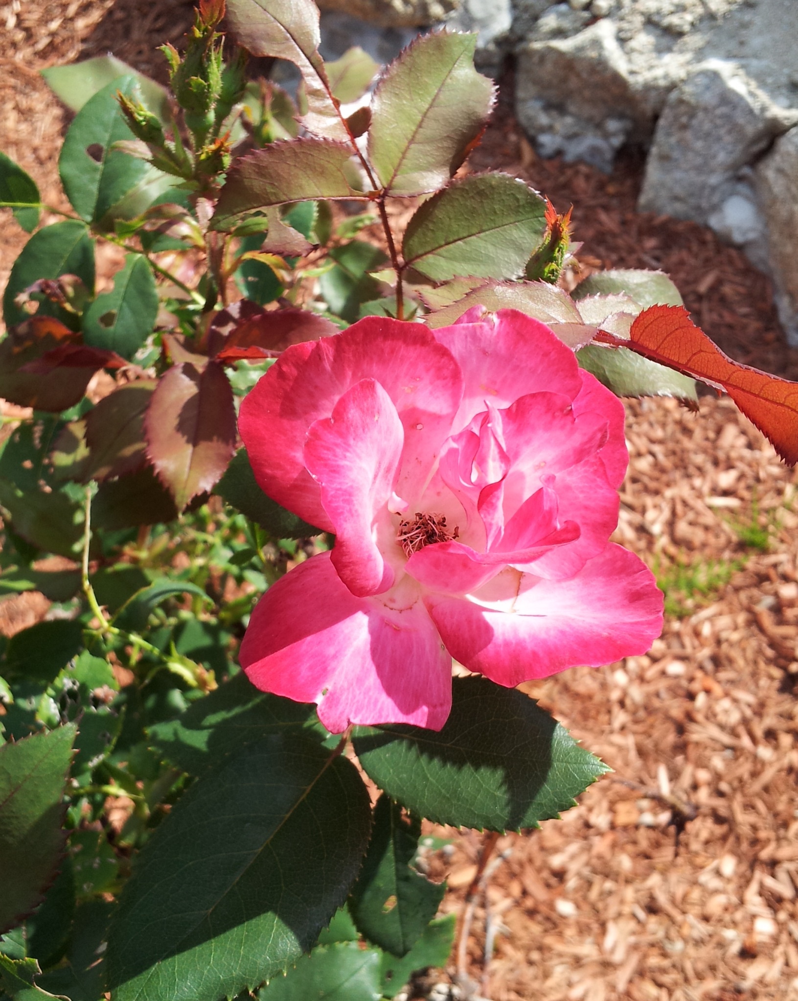 the Monarda have exploded into bloom this last week. Good timing for 4th of July celebrations! And hummingbird attractions. The rose is full bloom and shows the great color variation in the petals.