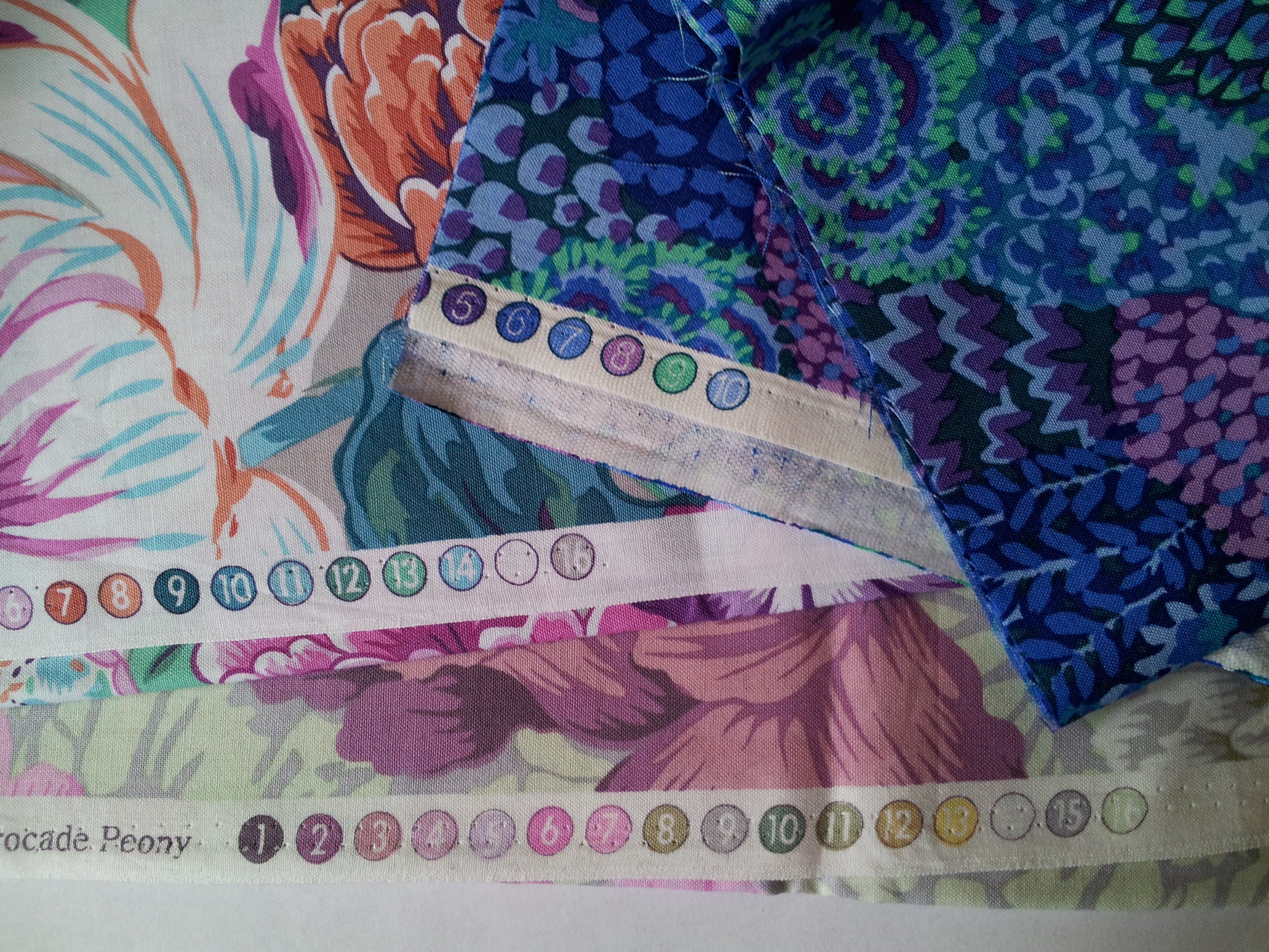 #2- Check the selvage color dots for choosing fabrics that play well together!