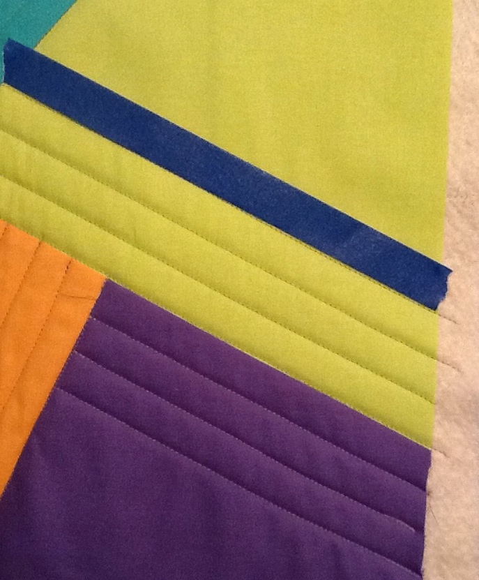 #2 – Blue painter’s tape is great for marking quilting lines.  (It comes in different sizes!  3/4″ is shown on the sample in the photo below.)