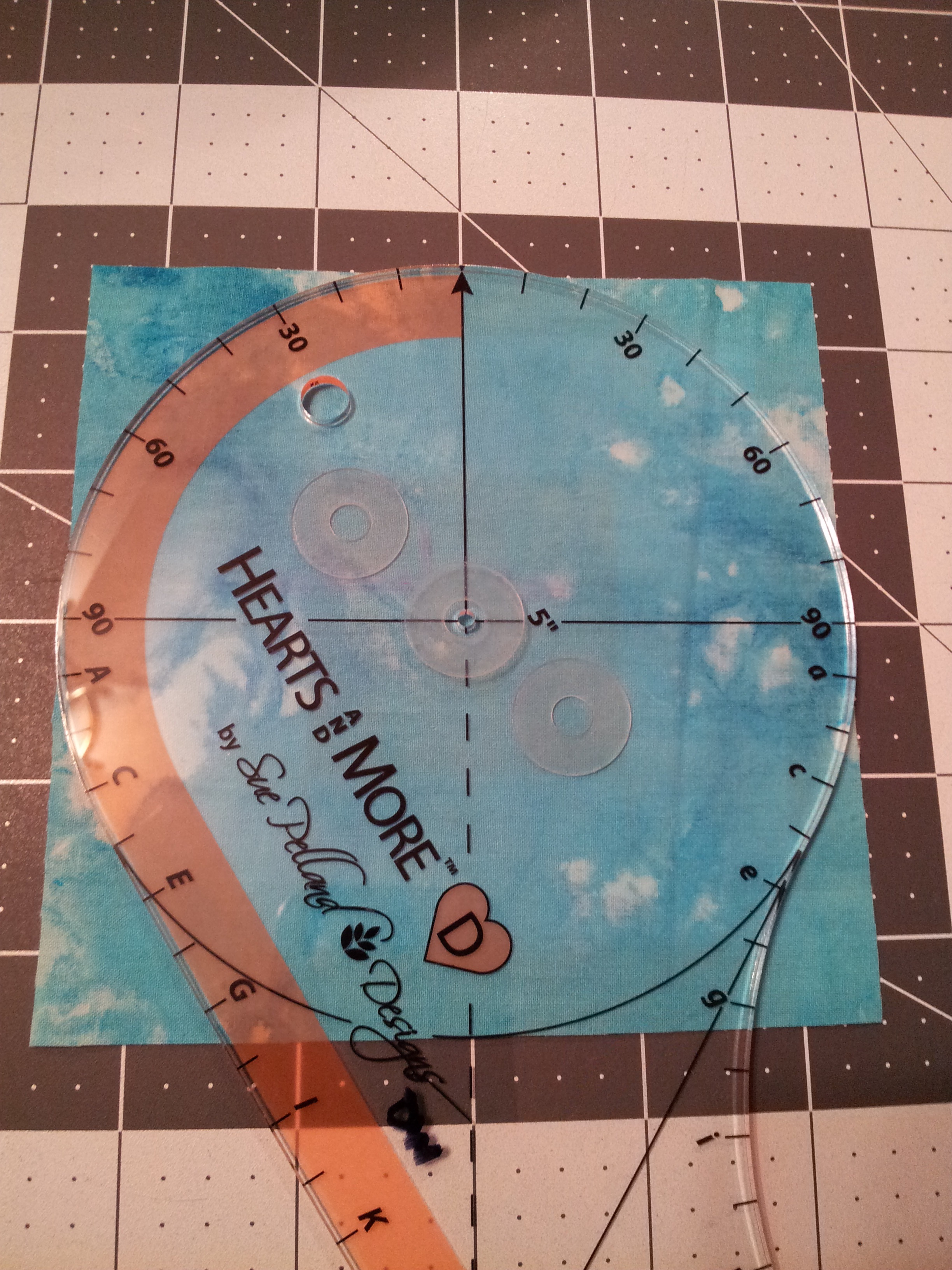 #1 – Use Sue Pelland’s “Hearts and More” 5″ template to rotary cut clamshells.