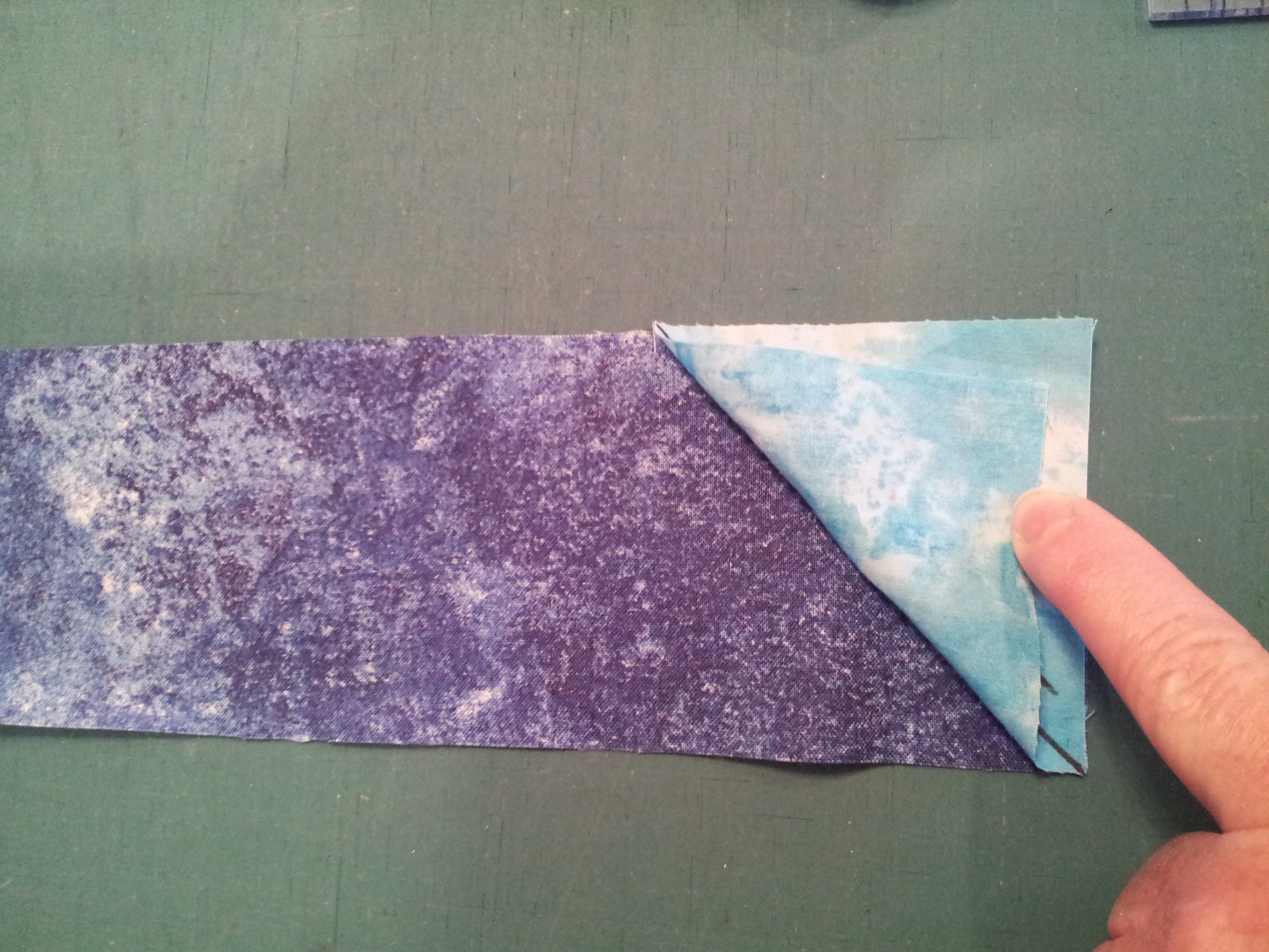- a square is placed on the end of the rectangle and sewn from corner to corner