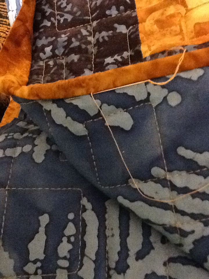 Bindings = Finished Quilts!! I’m doing the final turn of the binding to the back of the quilt. As I sit and sew, I’ve been thinking about what people call this process. In my mind I am finishing the binding or turning the binding to the back. When I lived in Louisiana, they called it hemming. It is just like hemming a pair of pants, but I had not heard it called this before.
