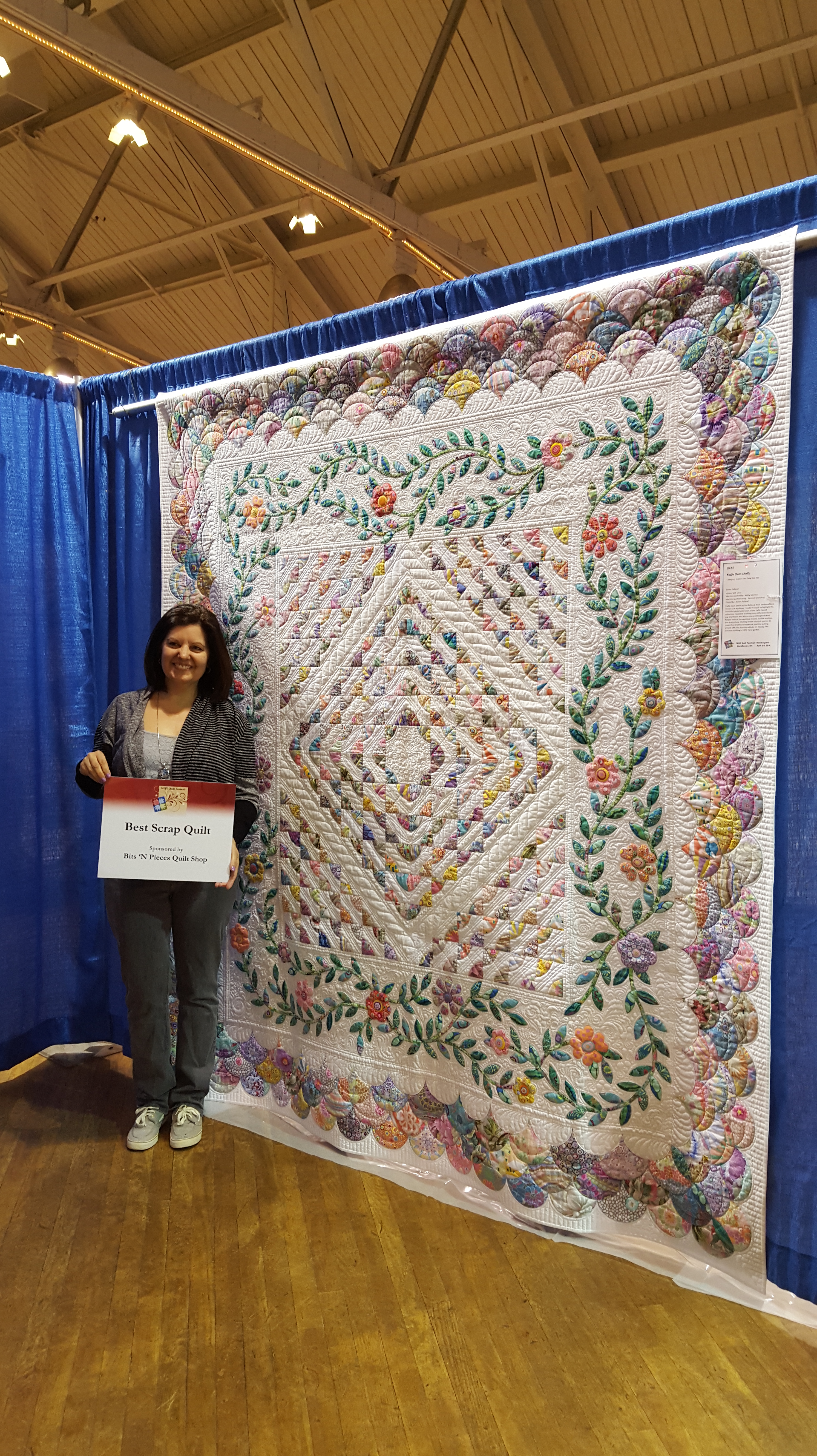 Quilt Show Inspiration! I attended MQX East this past week/end. I spent some time in Sturbridge Quilting and Sewing’s booth, Willow Leaf Designs and viewing some amazing quilts! My friend’s quilt “Kaffe Clam Shells” won Best Scrap Quilt!!! So happy for Sue Pelland and Kathy Sperino, her very talented quilter! I might have yelled just a little when their names were called at the awards ceremony!