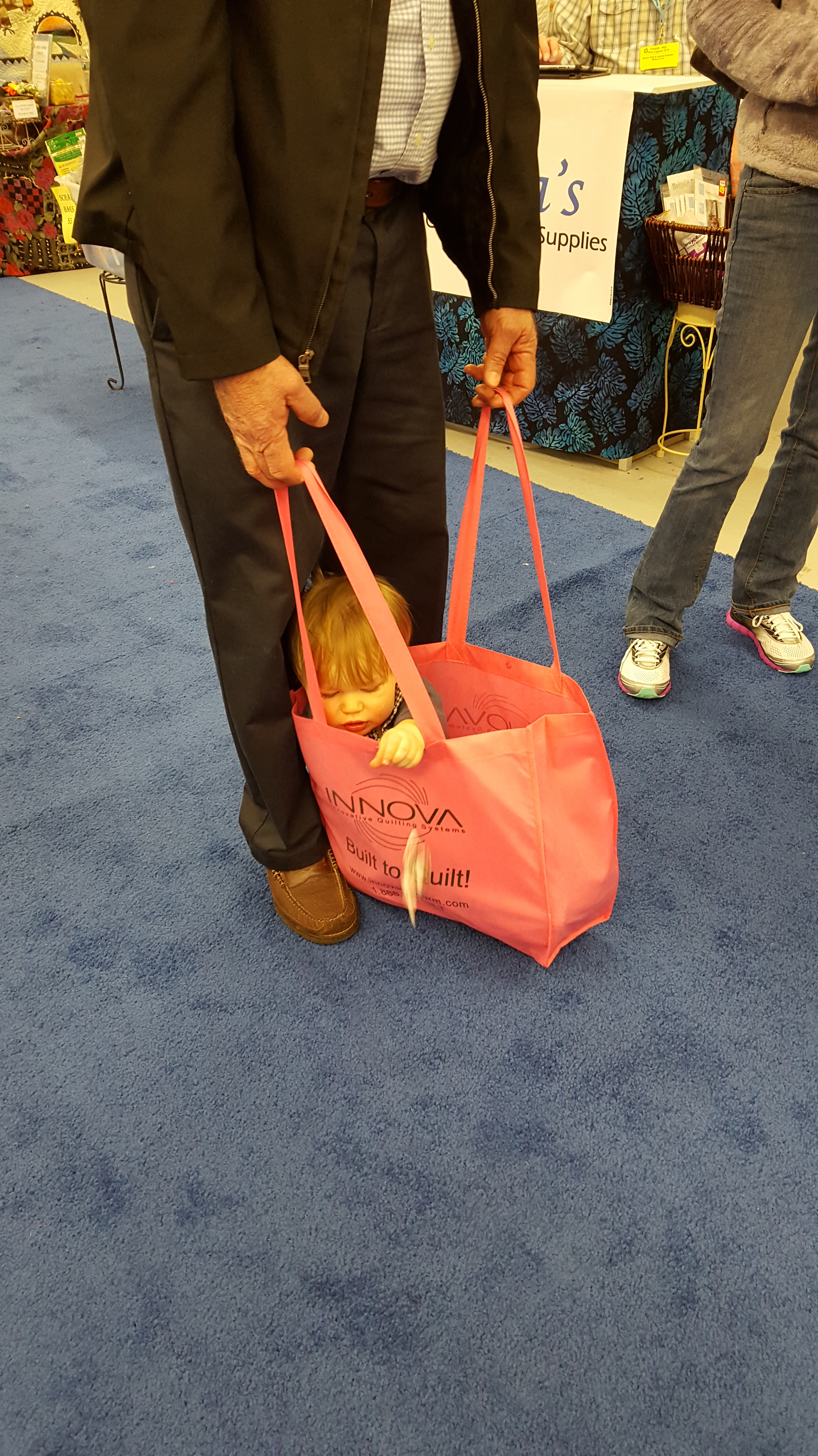 I love the inspiration at quilt shows. I love the quilts and the “odd” stuff things you see beyond the quilts. How about one tired little boy…