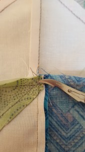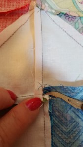 One of the questions I am asked a lot is “How and where do I unpick stitches in the middle of a seam to have that seam change directions?” This will be my second tip for today!