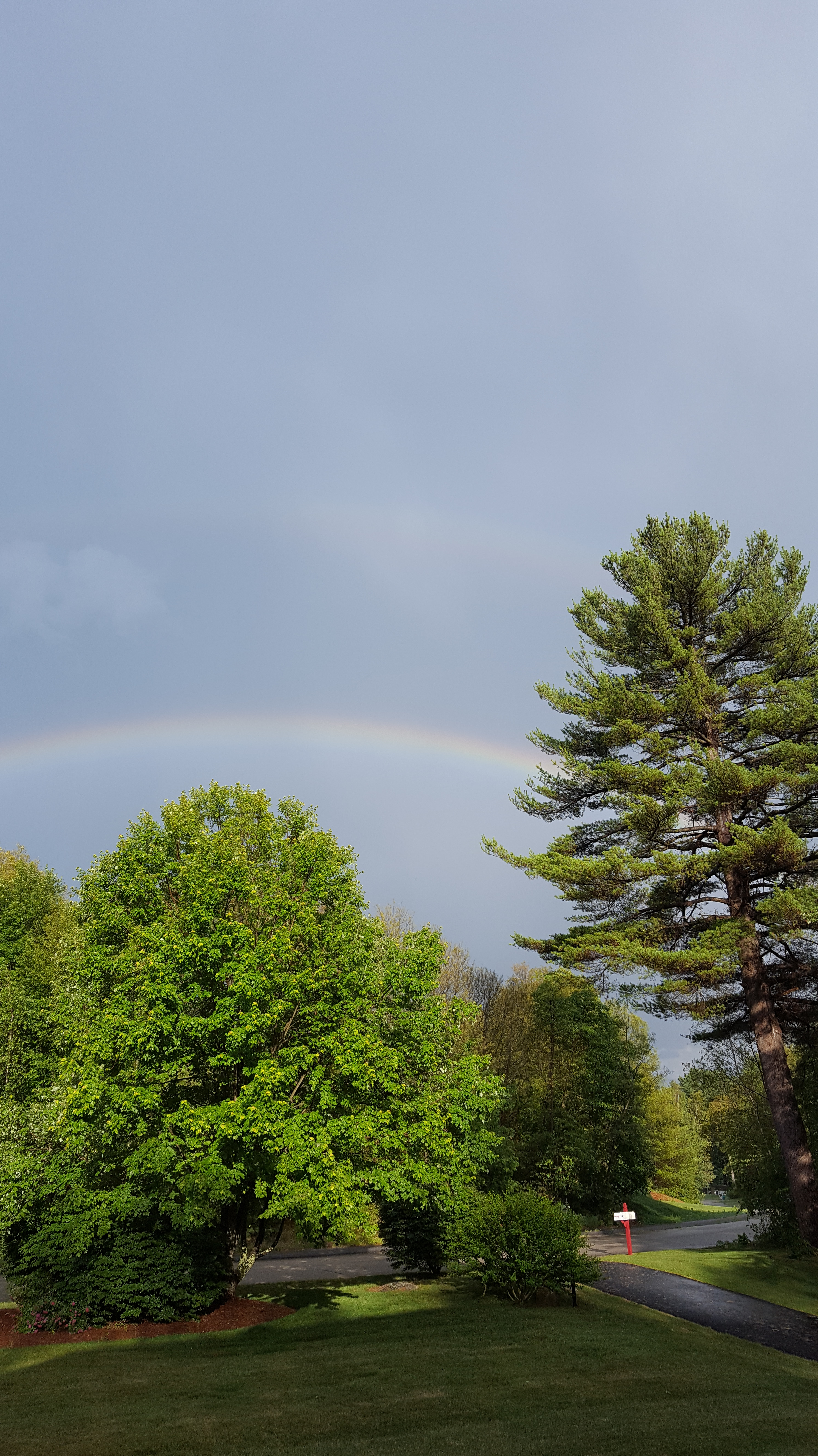 Tonight we had a great thunderstorm. Rumbles!! And a beautiful rainbow that turned into a double (my camera barely shows it).