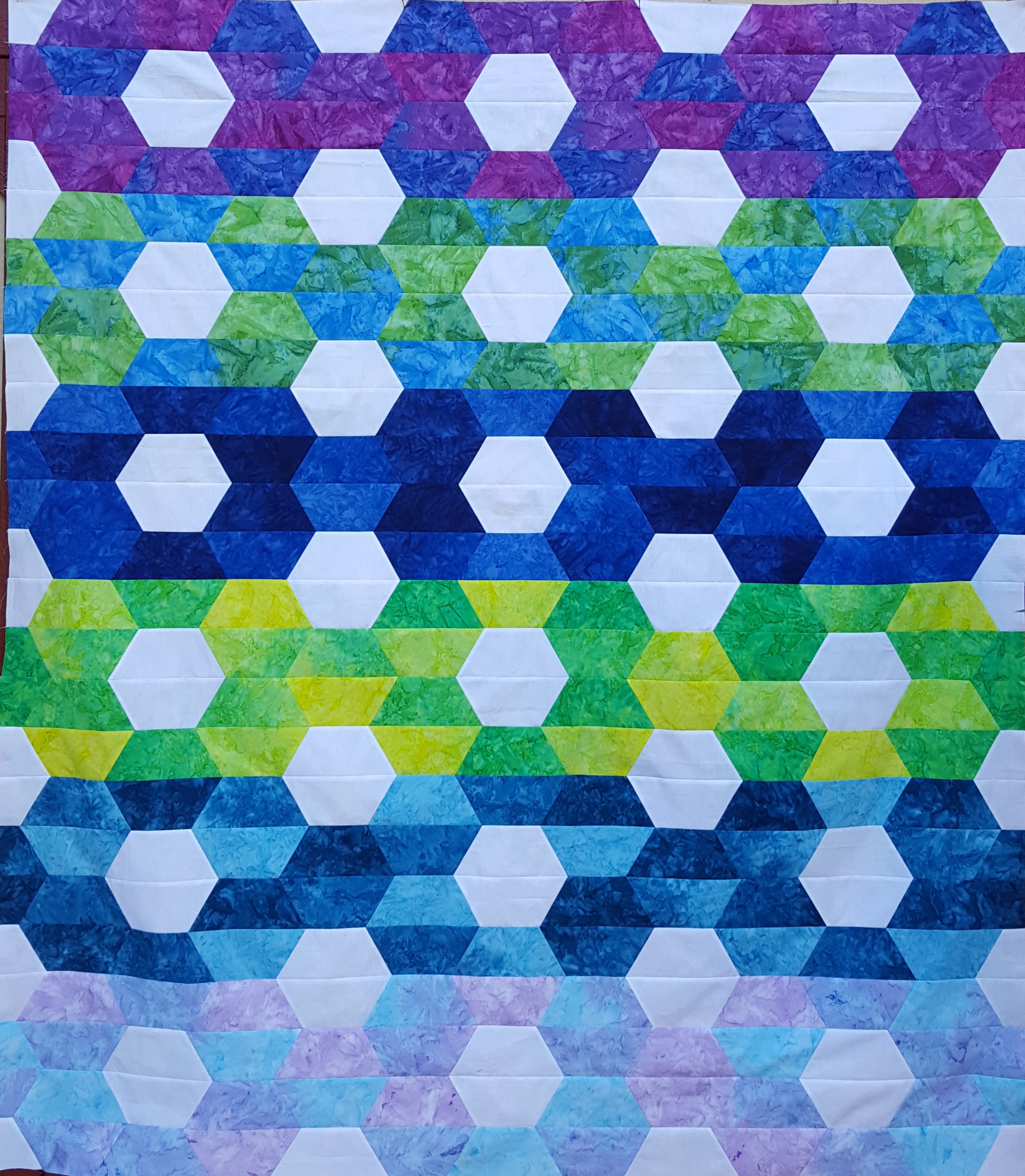 I have designed two new unique quilts that use the Hex-a-am-jig template. Take a look below! Soon to be available on my website. Look for the patterns in December.