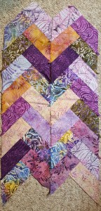 I used 2 1/2″ strips and cut the trapizoids shorter with my Brilliant Bindings tool.