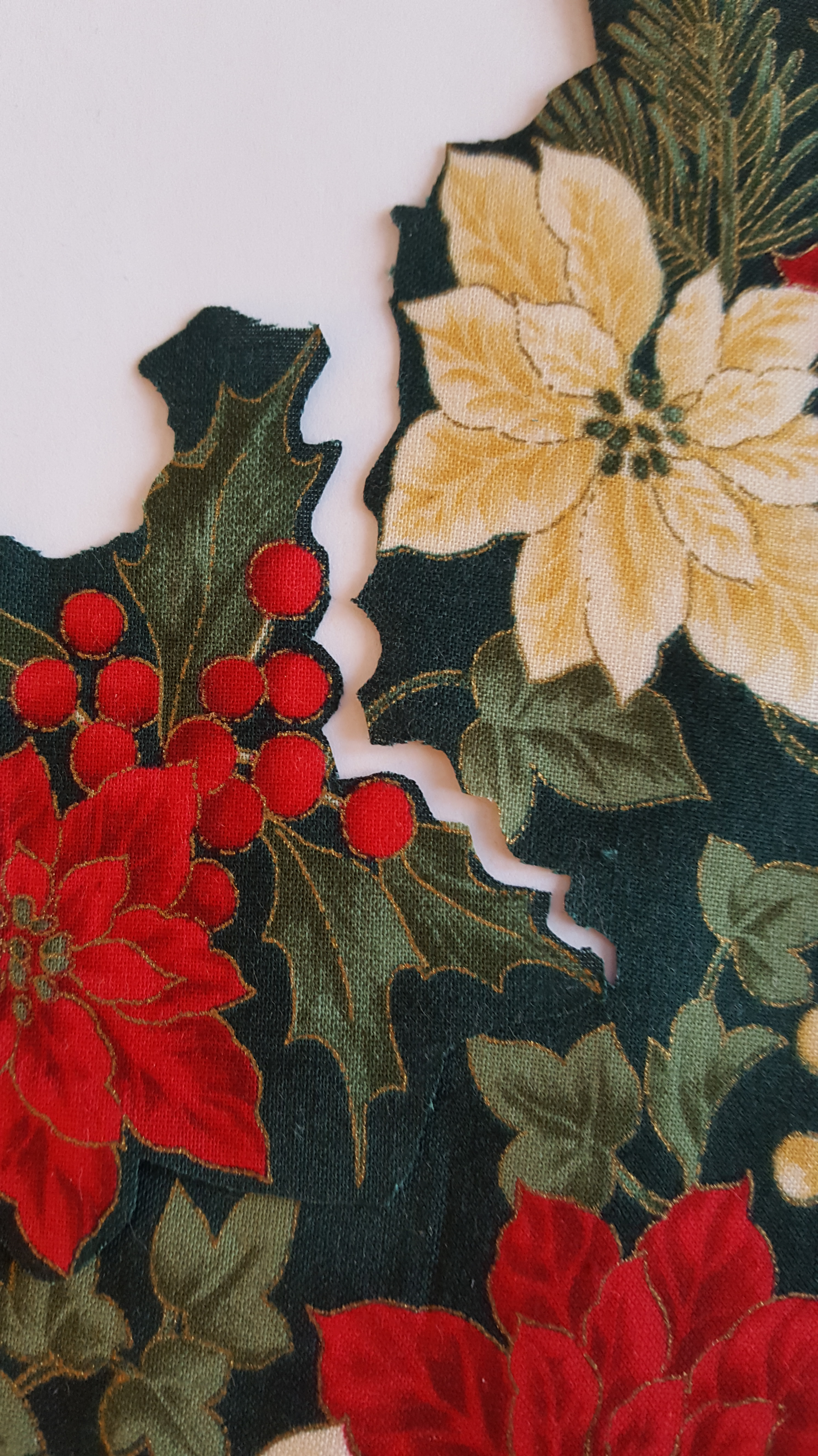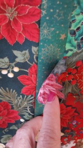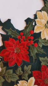 Now to find a place where it would make the transition on the quilt. Here will work! The poinsettia is a bit larger but covers the area and extends the design into the center of the quilt.