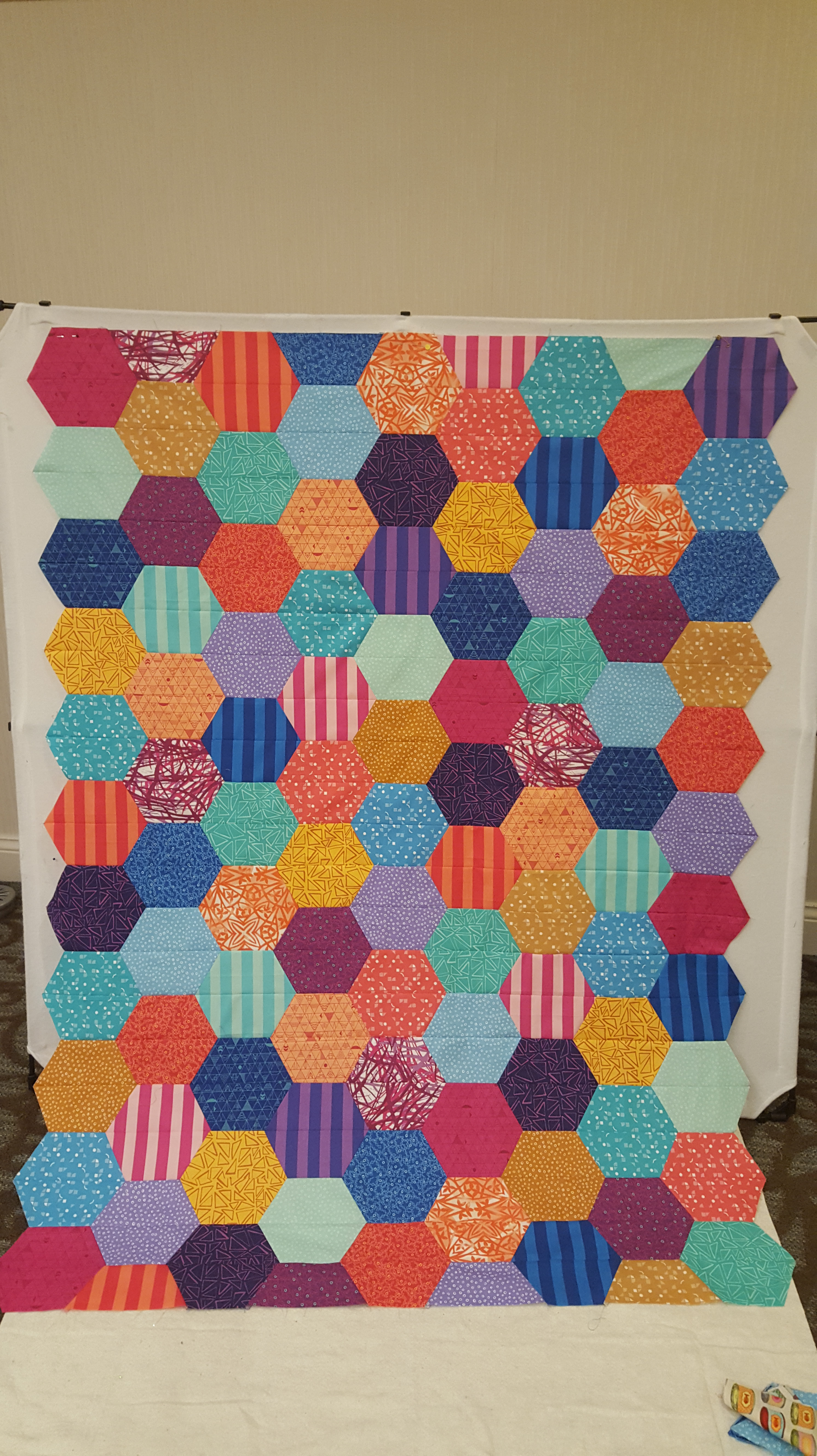 I sure enjoy an entire weekend focused on quilting! It is easy for me to get sidetracked when sewing at home. I had a very productive weekend on the Cape. Same as my last getaway, I was working on “Hex-a-ma-jig” Hexie quilts. Two more completed!