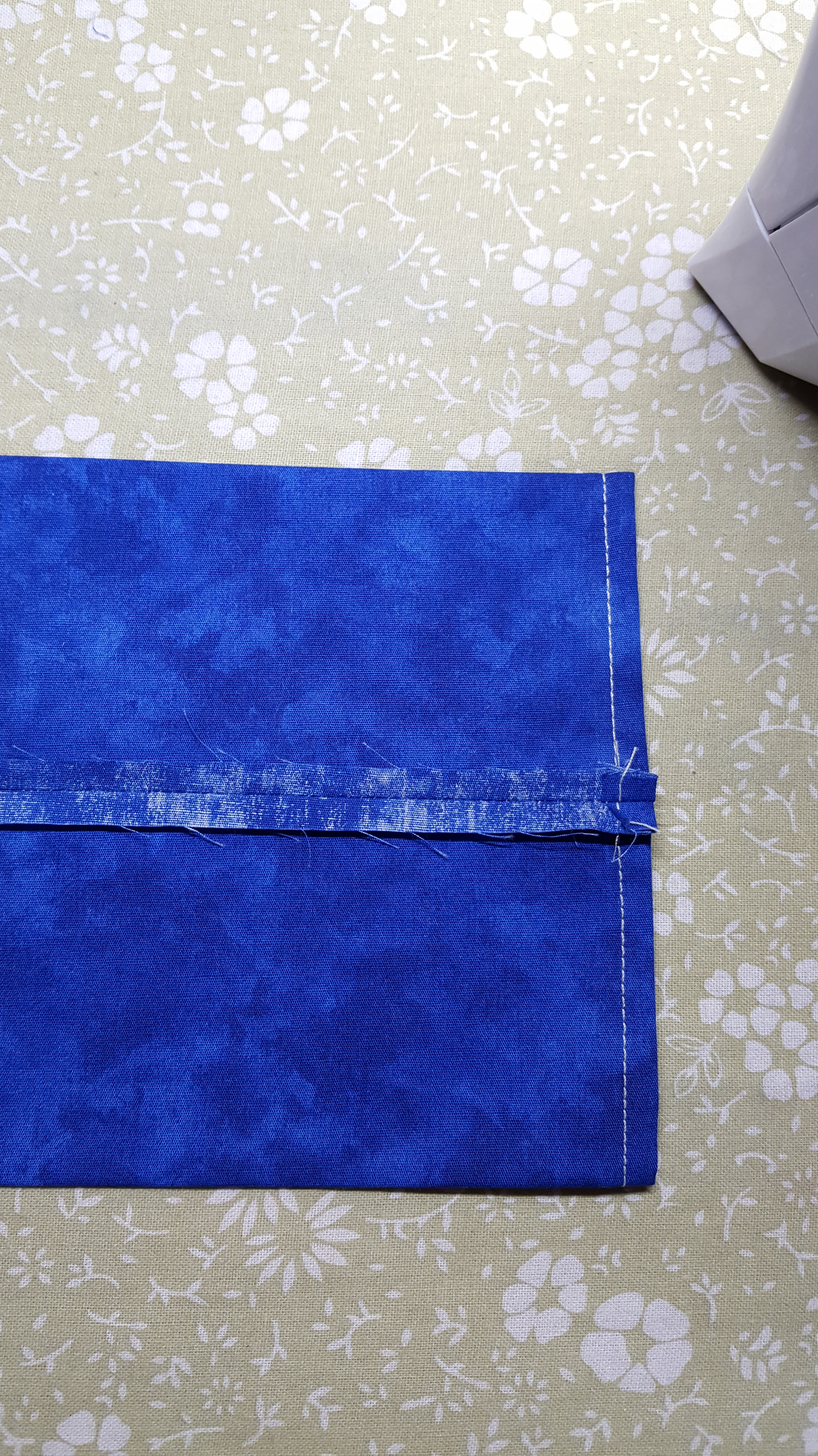 4 – On one long edge, fold back 1/2″ from fold line and press a crease. (Tip: This allows for the thickness of the of the hanging pole.)