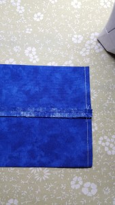 2 – Hem both short ends, folding over 1/4″ and fold over again. Stitch. (Tip: This will bring the width inside the binding so it does not show from the front. Oh, and I was a bit long so it sits closer to the binding than I like.)