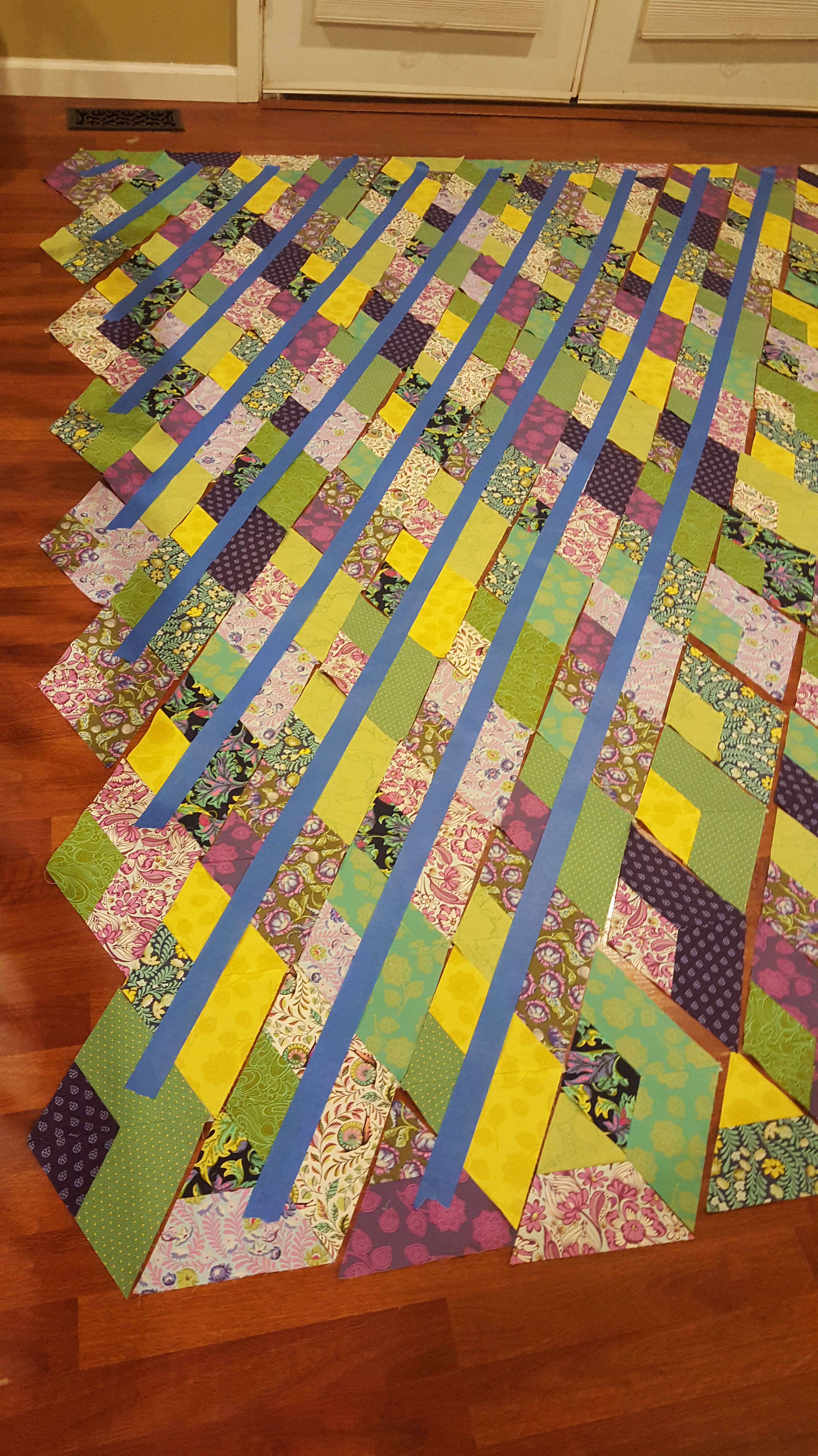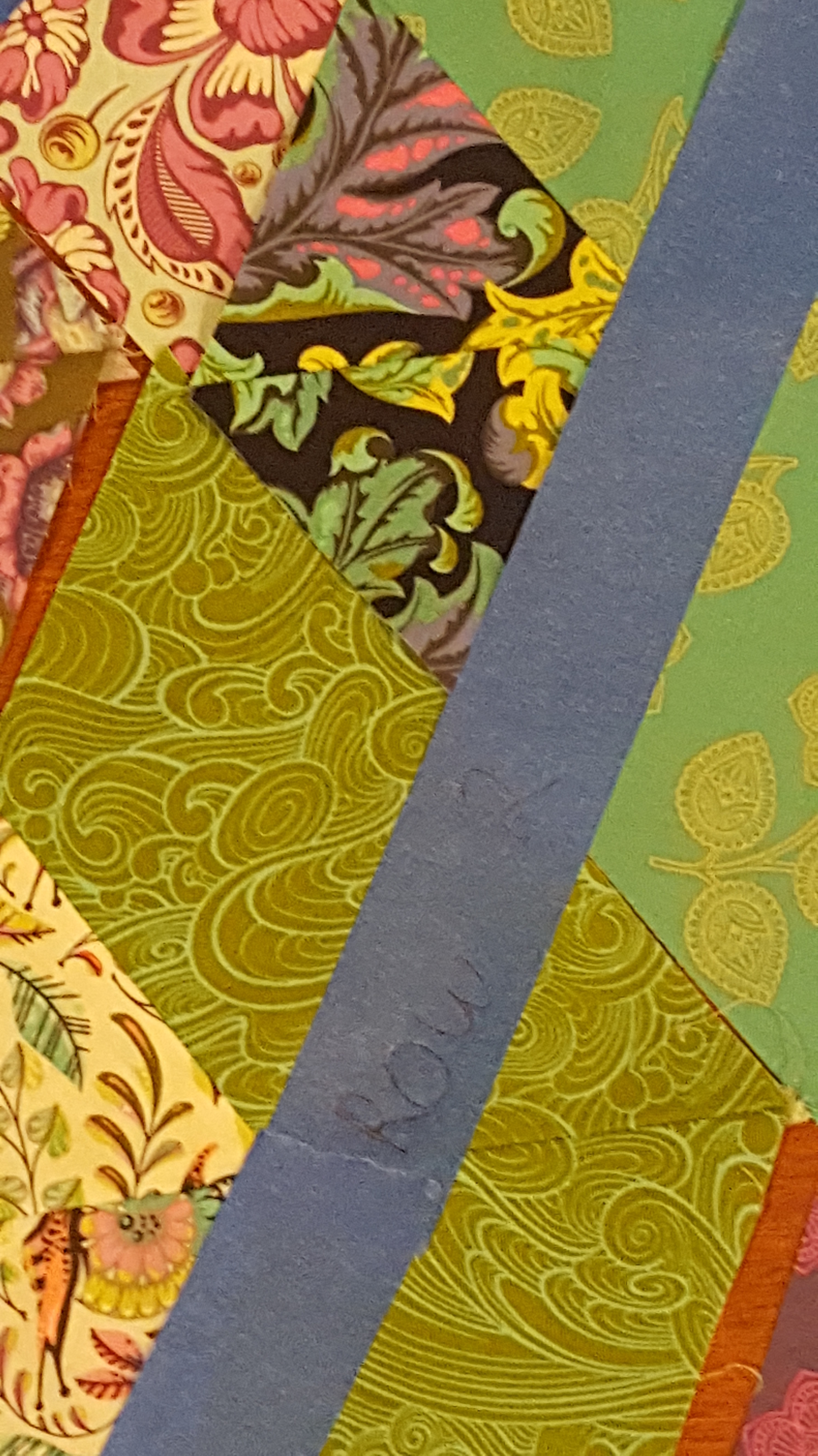 My tips today were inspired by my dear friend Kim. She layed out her quilt blocks while we were in Paducah so we could give her advice on the layout. She had her blue painters tape in hand. My question to her, “what will you do with the tape, mark the rows”. “No, to tape the blocks together in the row,” ….BRILLIANT! I told her I’m stealing the idea for Two Tips! And then as most of us do, mark the row number to keep track. She marked it right on the tape. After rolling up the rows we realized she needed to have the number on the outside edge to be sure to find it.