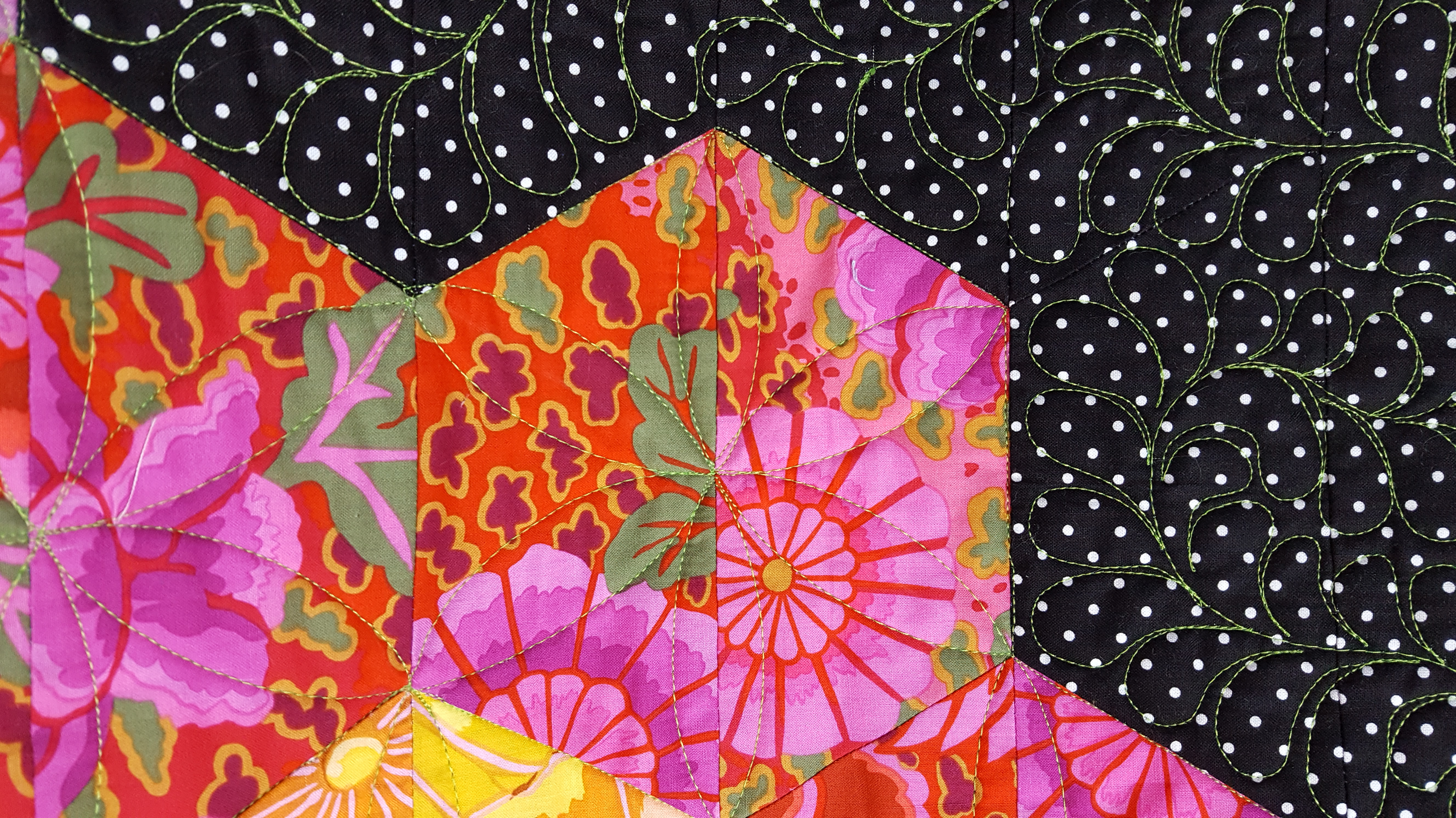 I’ve been busy quilting several other Hex-a-ma-jig quilts. These quilts/designs are included in the Hex-a-ma-jig instructions. One tool, six quilts right off the bat. Hex-a-ma-jig is on my website! Hex-a-ma-jig I will be featuring the tool and quilts at Spring Quilt Market next week in Portland, OR. Three others are shown below. YES! I love to quilt feathers. I had a lot of fun with these feathers.