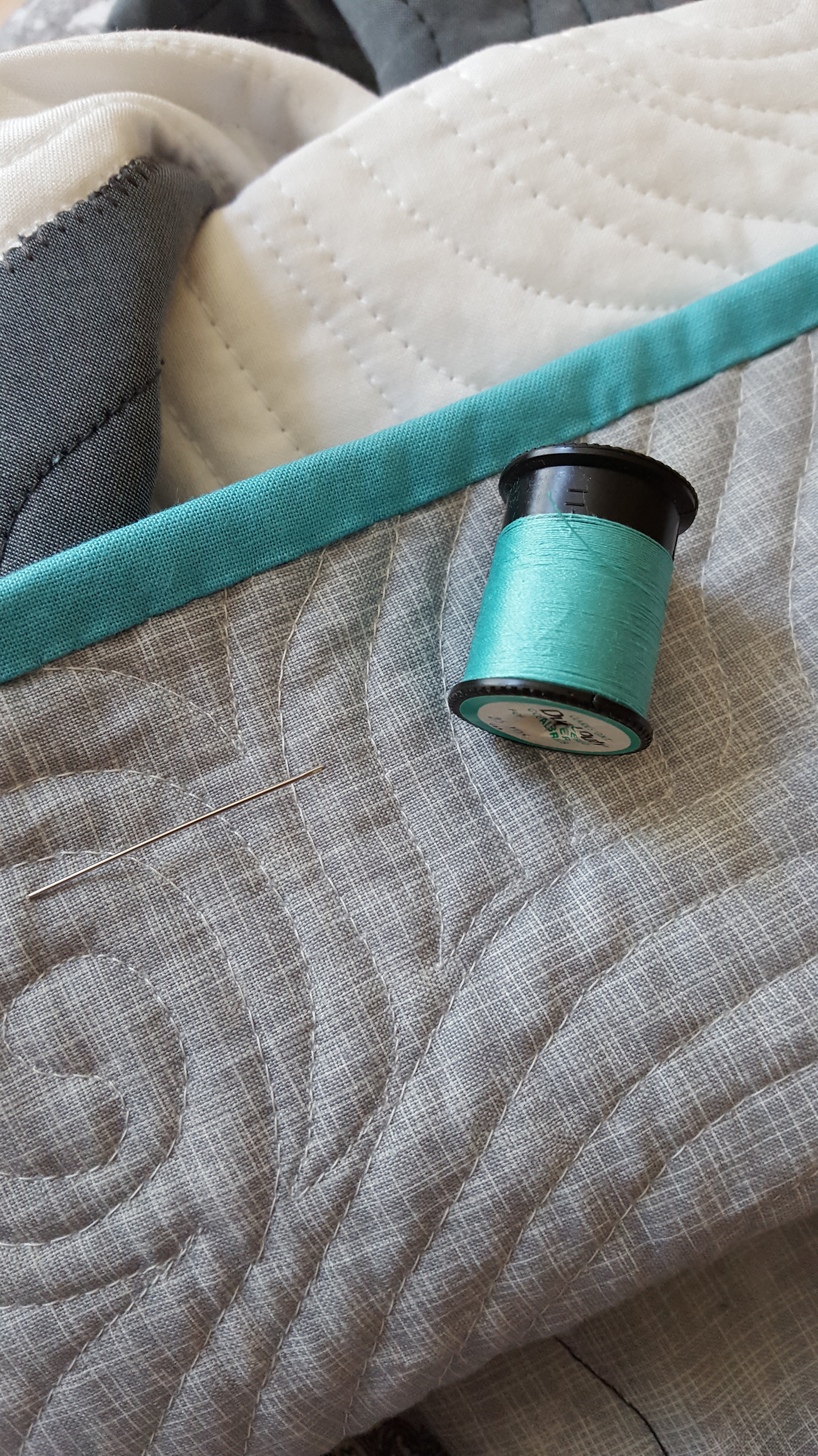I love it when you have enough thread of the perfect color to make it all the way around the quilt binding!