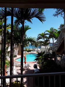 Blue is the word and color today! I’m enjoying some Florida BLUE skies while I stitch on a blue quilt. My view is below!!