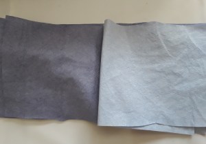 I pre-washed and so glad I did! Many batiks are hand dyed and need have the excess color/dye in them. I used “Shout Color Catchers” by SC Johnson. I put two Color Catchers in the first washing with a little laundry detergent and warm water. See how they came out below. I repeated with a second wash, the second sheets in the photo.
