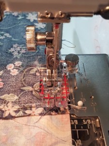 #1 – Move your needle position by using the “stitch width” button to bump the needle for preferred 1/4″ seam width.