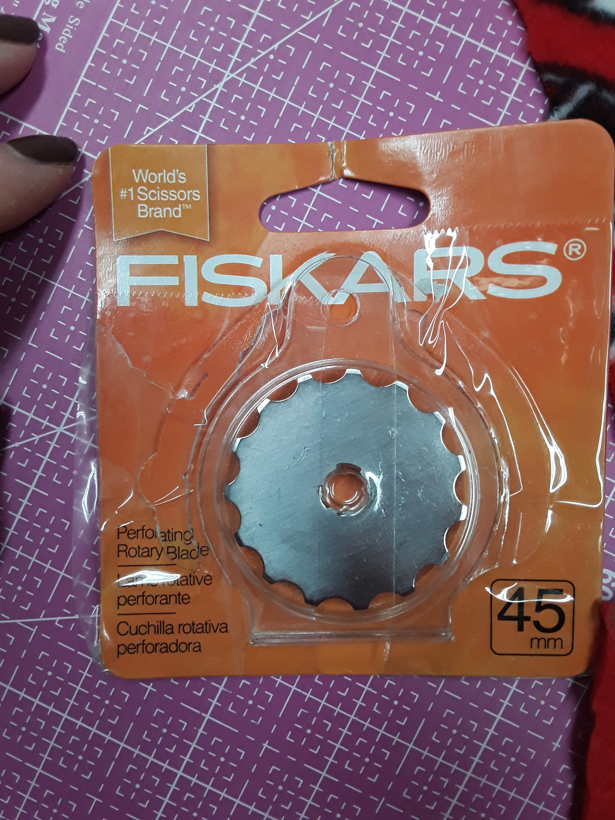 Welcome 2020!! I can think of all kinds of puns for seeing clearly for this new year! It will be a fun year! I ended 2019 with tips on making a blanket stitch on a blanket I made for my daughter-in-law. I’m happy to report, she loves it!! The material I used on hers was actually high plush like a minky fabric. It was easy to get the needle though the fibers. I enjoyed the blanket stitch so much I’ve decided to work on a fleece one. This next one is more of your typical polar fleece and is difficult to push a blunt tapestry needle through. So, I purchased a perforating blade to make holes in the fleece. Now, I’m able to get the needle through without making a mess of the fleece. See the blade below. I have no affiliation with this company but one of the few who I’ve found who make this type of rotary blade.