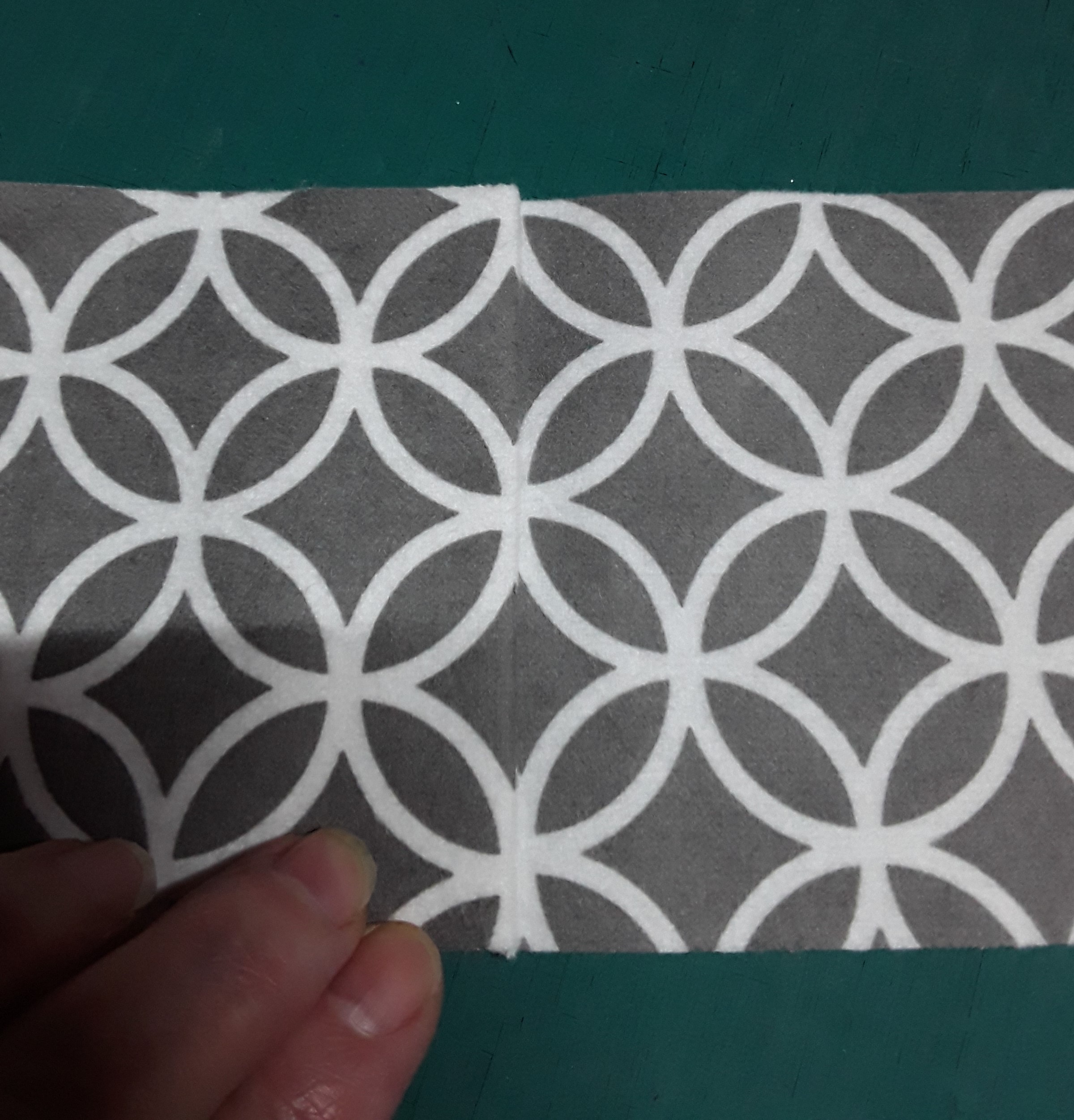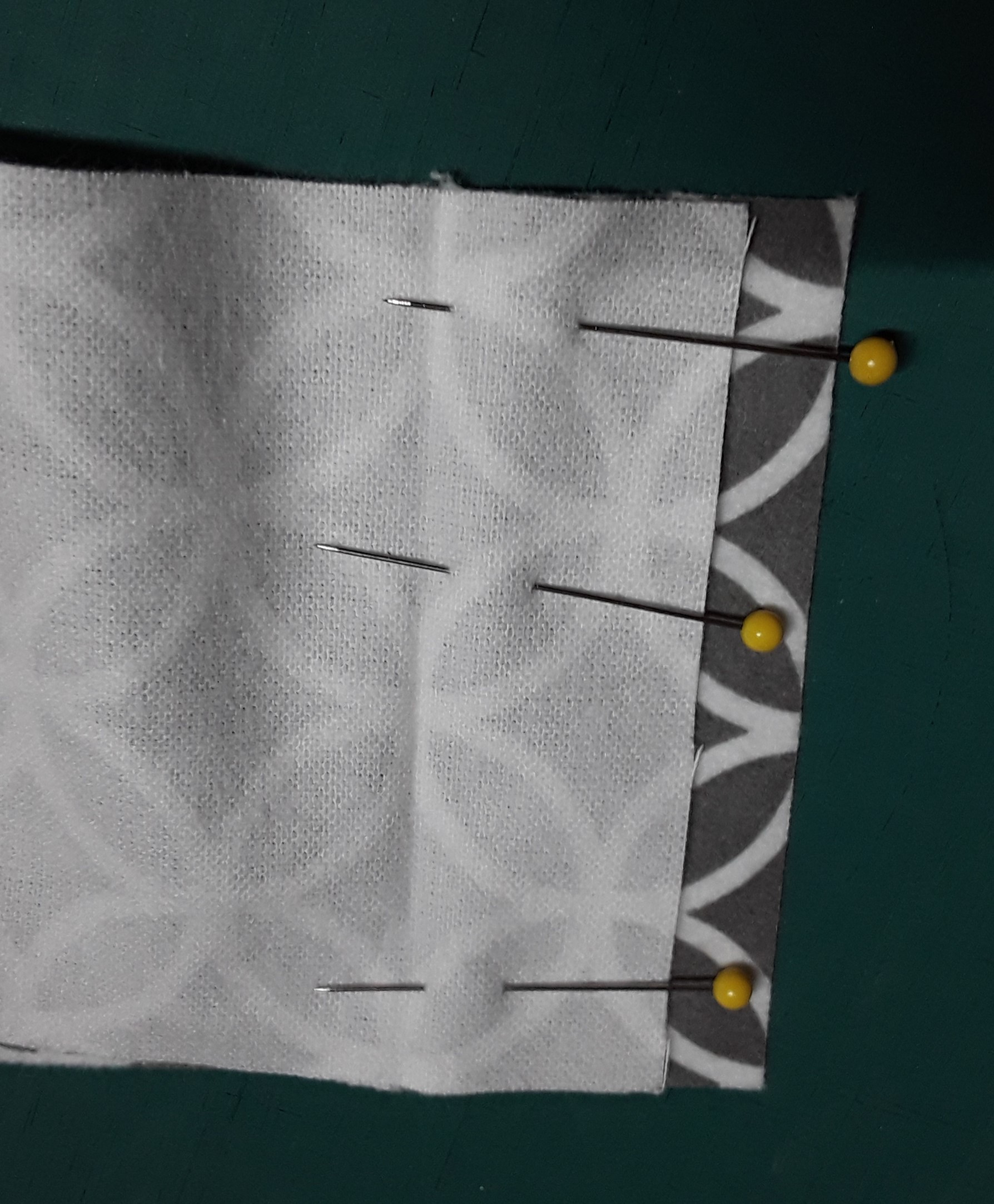 3. Pin in place. The flannel fabric stays put nicely. You can use fabric glue to keep it from slipping on regular quilter’s cotton.