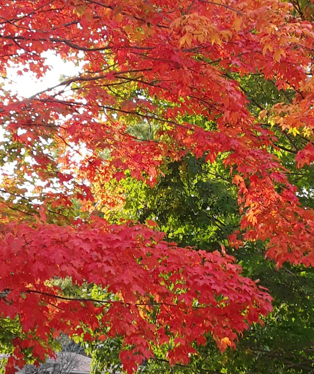 I am inspired by the change of color here in New England. It is leaf peeping season, taking a drive to look at the leaves. I picked up some leaves out of my yard for the Fall into Options FB live. I’ll put the picture below. Then, another inspiration! This tree was in a local park. Glorious!!