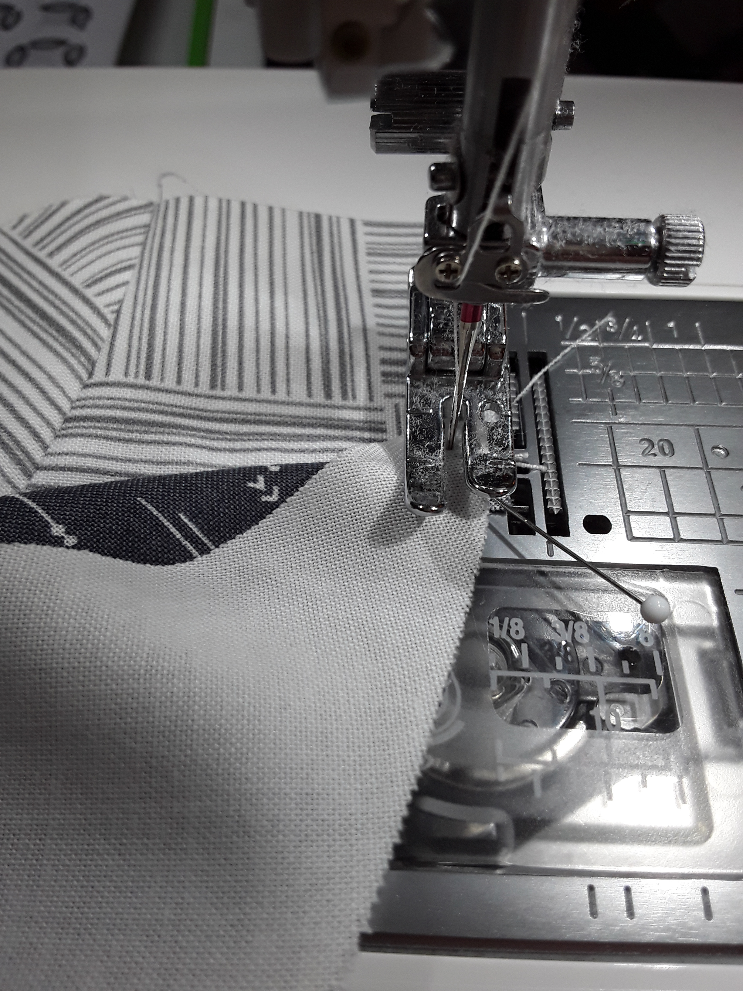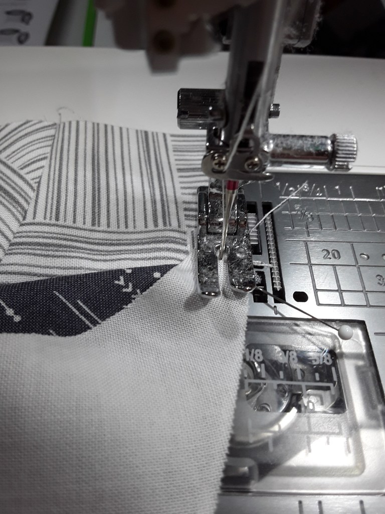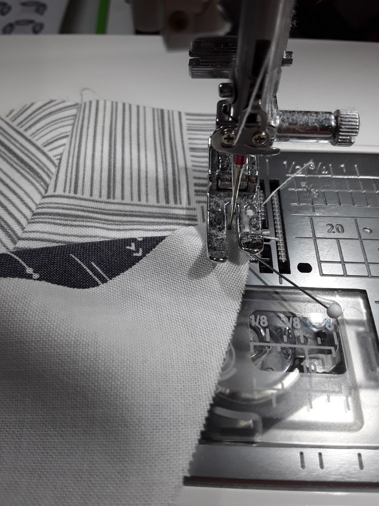 When I stopped sewing the seam at the next corner I could use the “cut” button to cut the thread and it also raises the presser foot. Brilliant for this construction process!