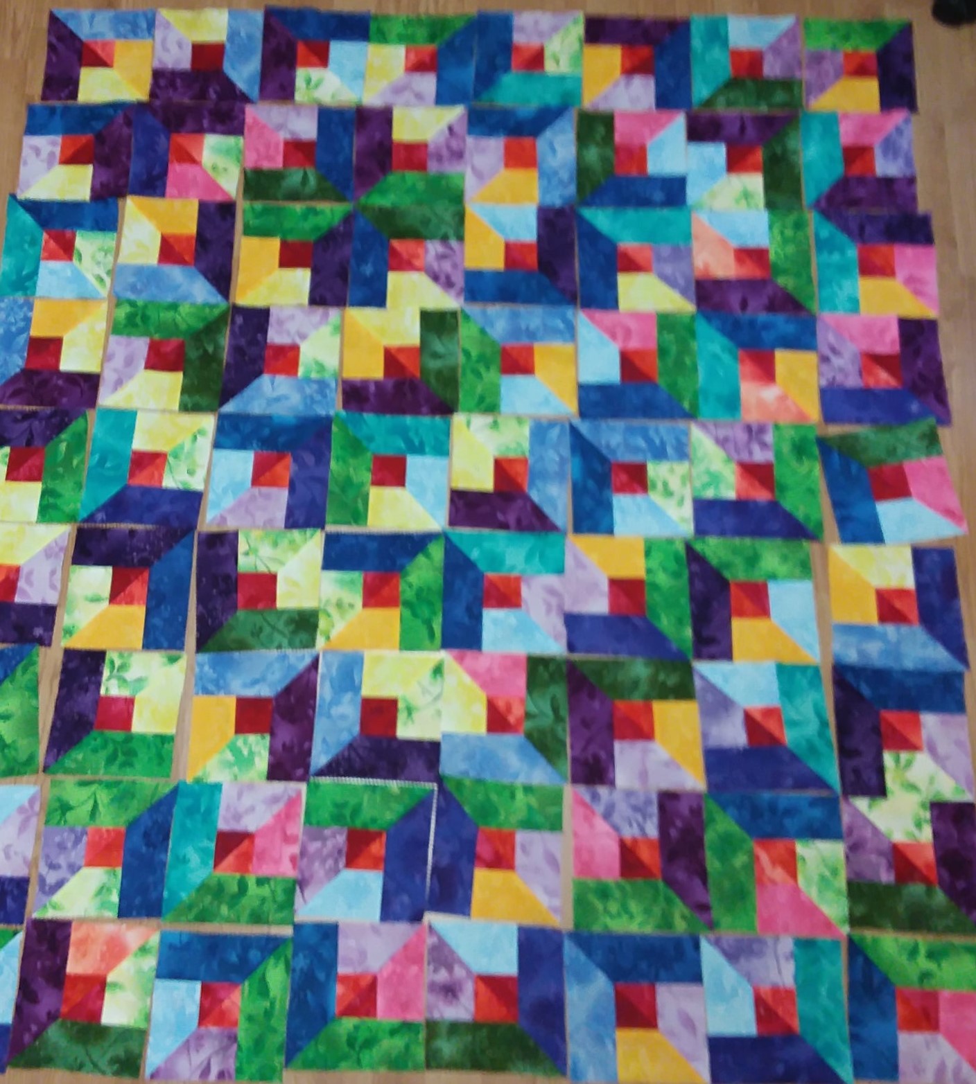 First, this quilt can be arranged in many different ways (as I mentioned last week with Cheryl’s clockwise swirl). The quilt below was made by my Aunt Jody back in December. She sends me surprise photos every few months of quilts she has made with one of my patterns!! Love her and her beautiful attention to detail!