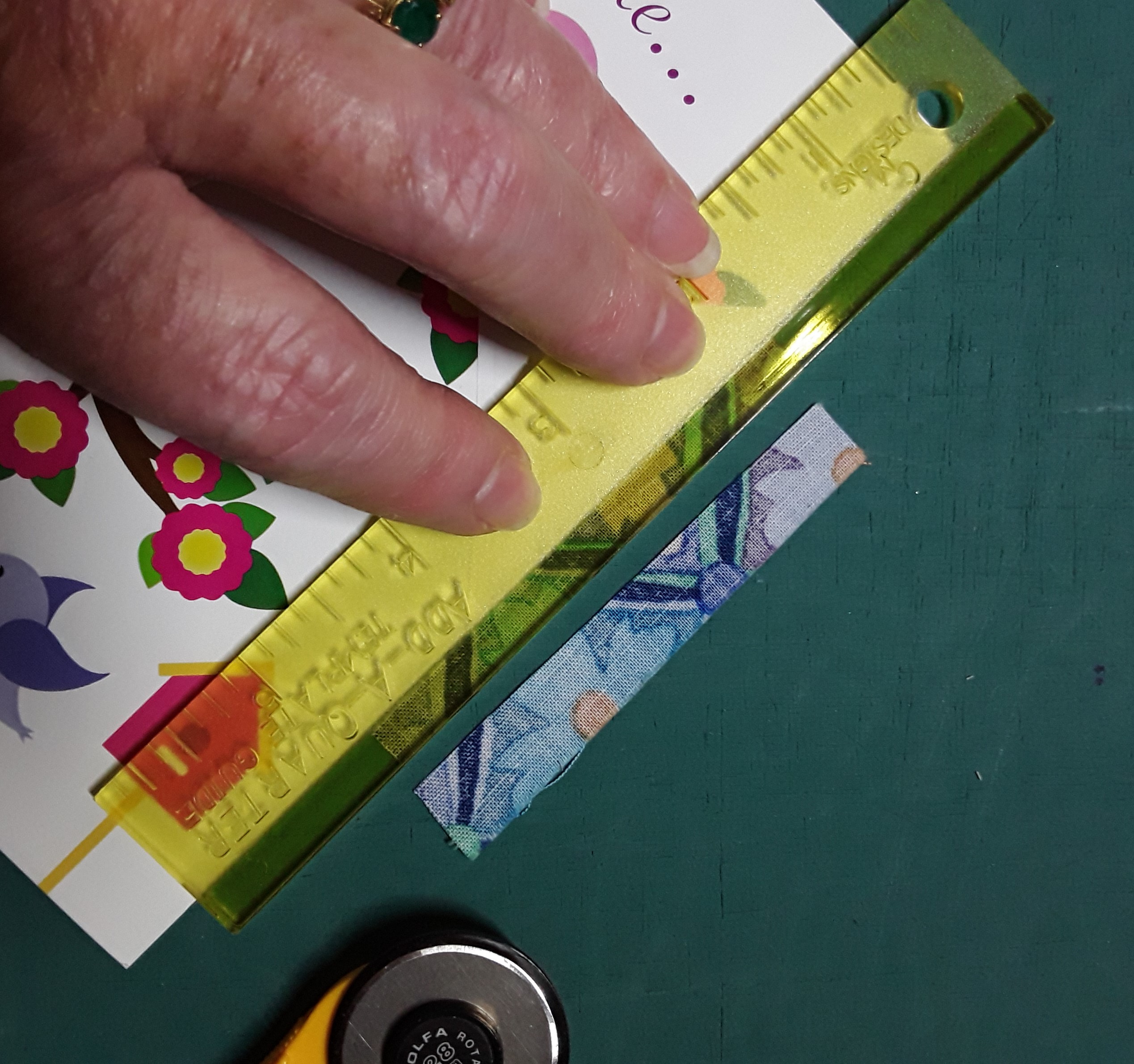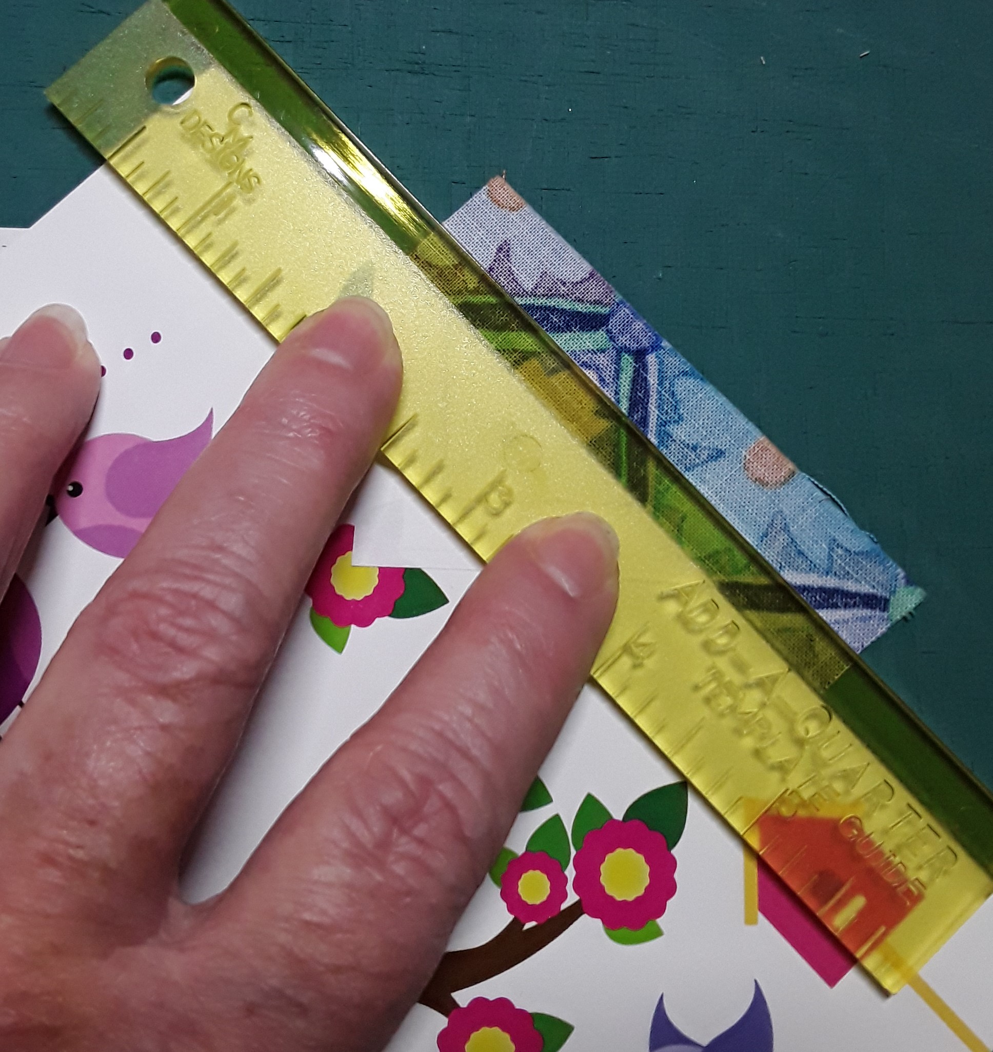 #2 – Trim the excess seam allowance with “Add-A-Quarter” tool. No affiliation, just a great handy tool when foundation paper piecing!