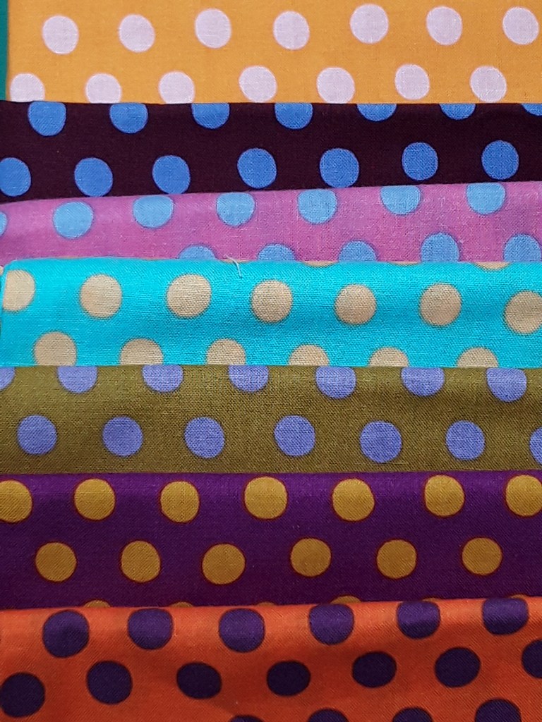 On another front, I posted my fabric pull for the next Imagination Renovation April Block Challenge. This month we are focusing on the PINWHEEL Block. Take a look over on my Instagram page @debbiewendtquilting. My fabric choices are below. I love these Kaffe Fassett dots!