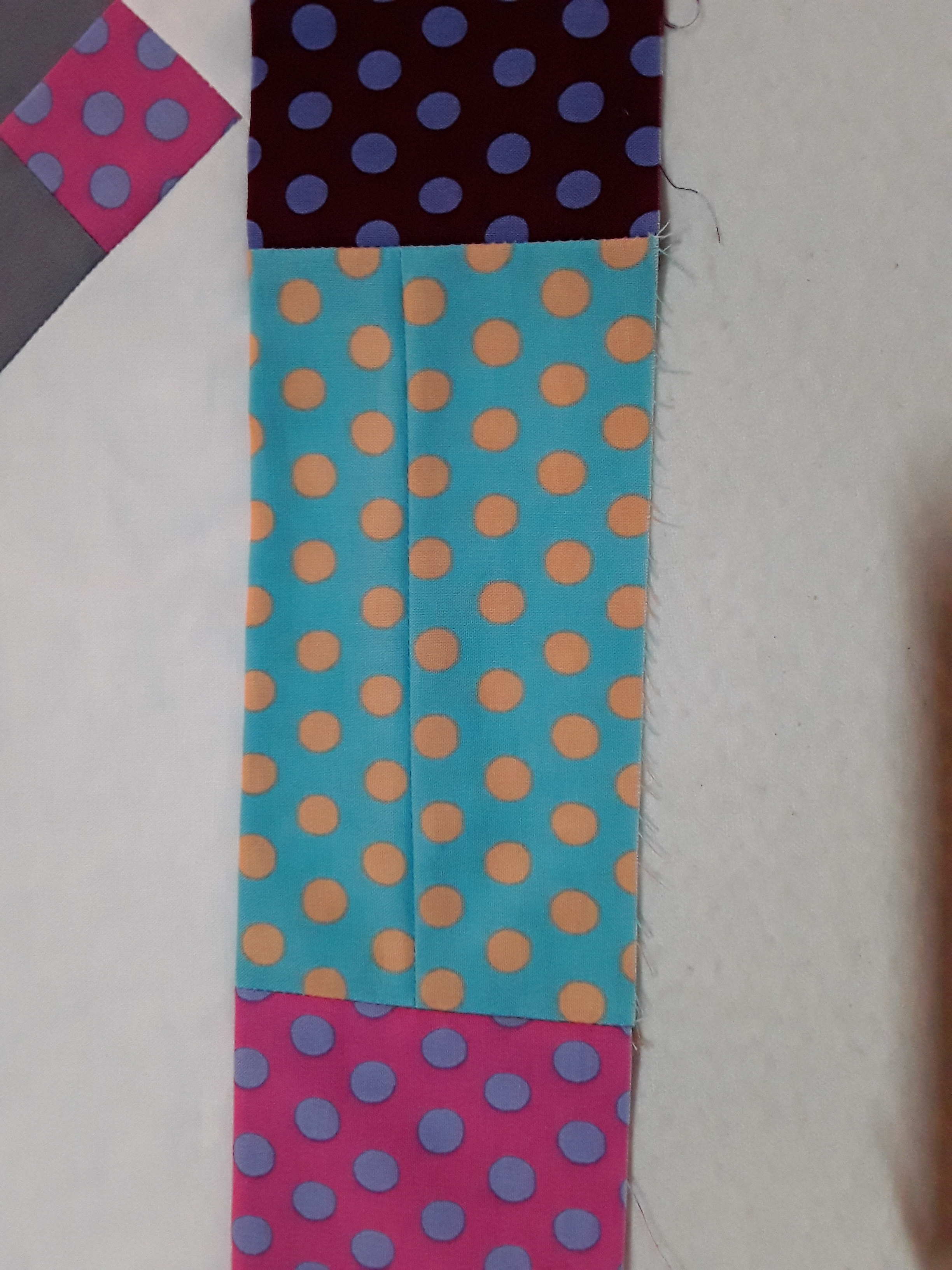 AND the FQ that was a bit too small…I pieced the extra together to make another rectangle so I could place a teal on each of my four sides. Yes, I had the power (and knowledge) to make it happen. No panic and I didn’t have to go buy more fabric. I am showing you a close up of my seam. I made sure to follow the pattern and from a distance, you won’t even be able to tell it was pieced (especially after it is quilted).