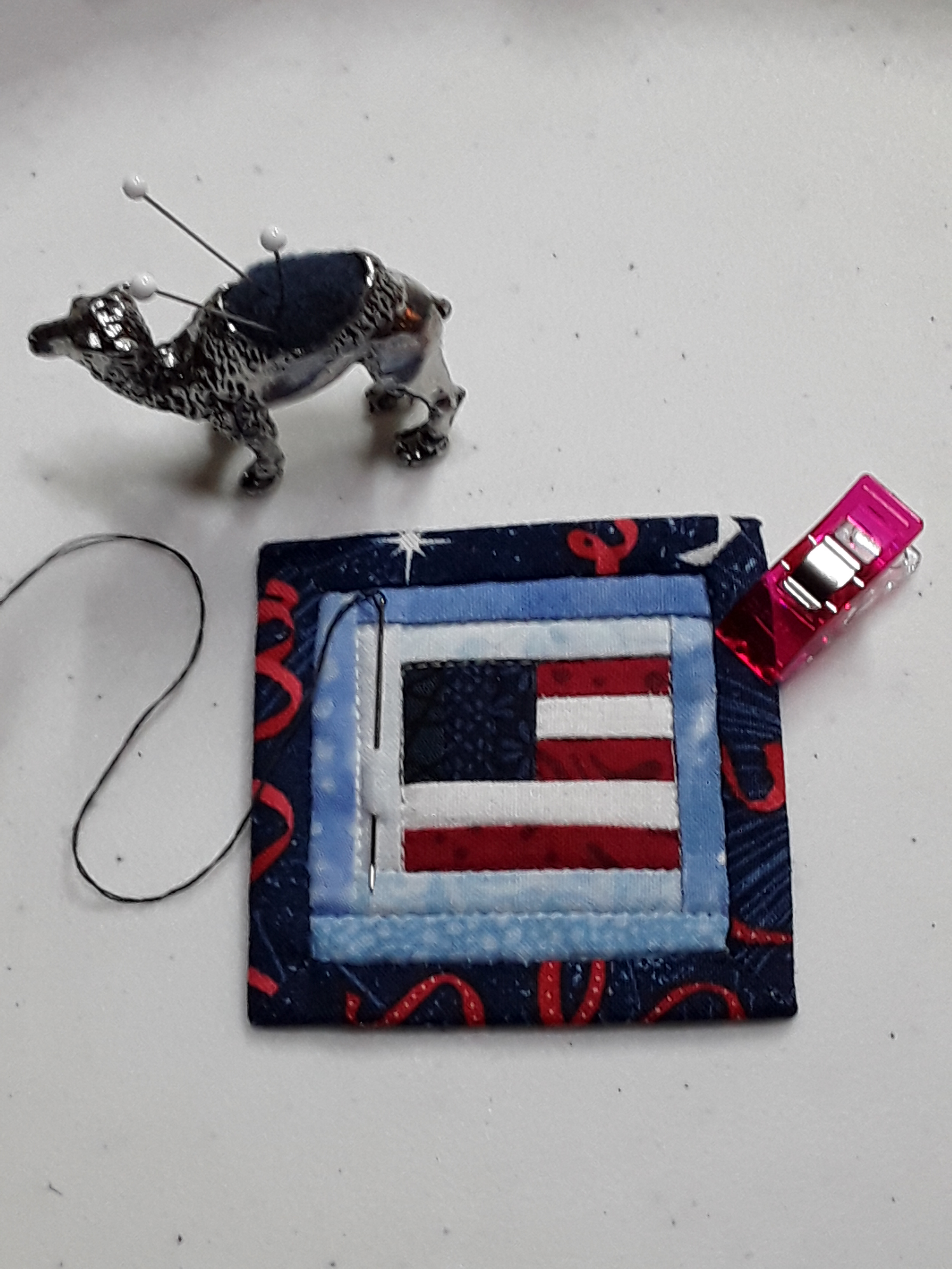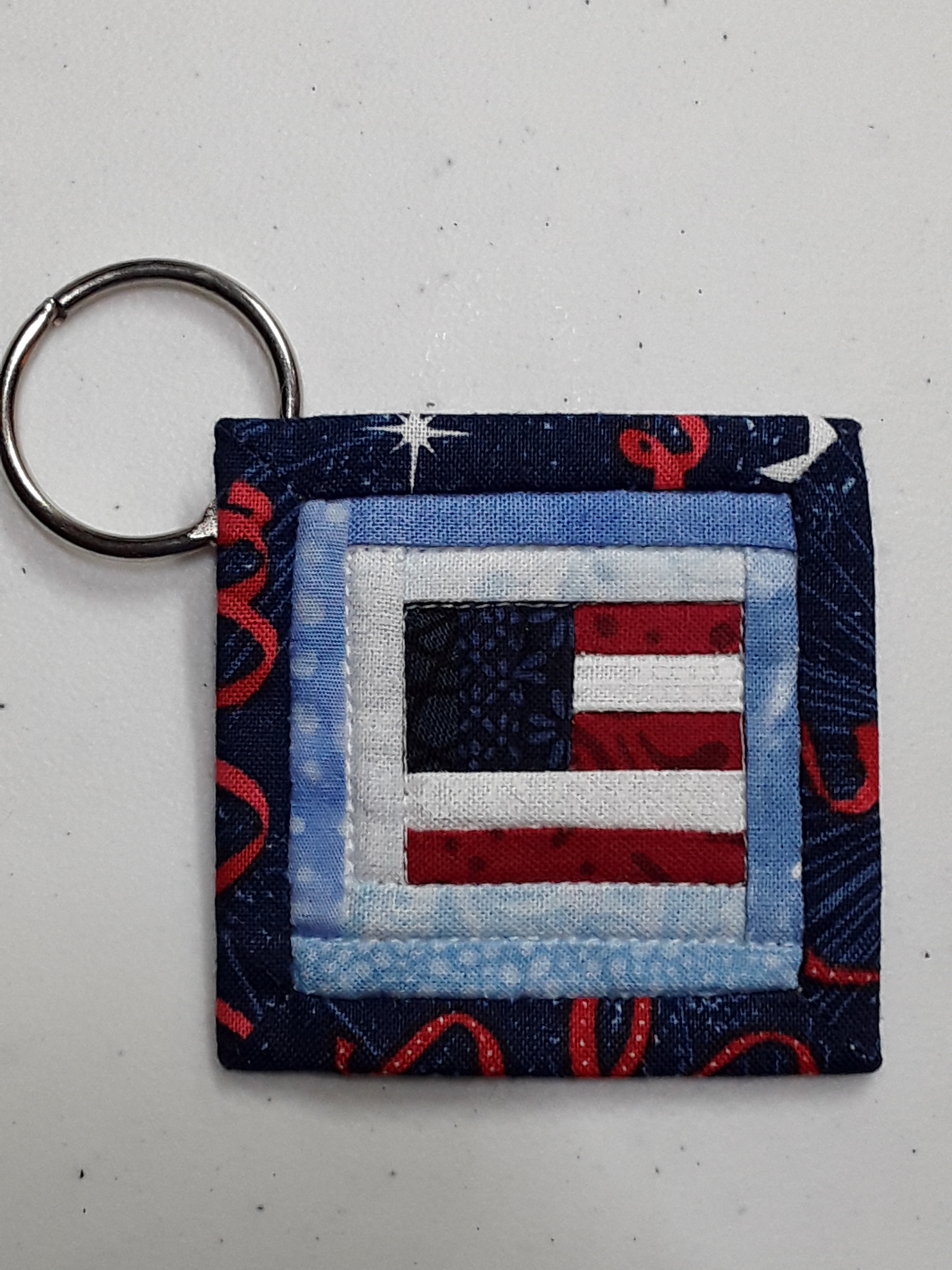 I love my LITTLE quilt. Sure it is sorta one block, but so darn cute. I shared two photos. One using this little 2″ log cabin cuteness as a needle/clip holder and the other as a key fob. I have yet to add the grommet to make it a real fob to hold keys, hoping you get the idea with the photo!