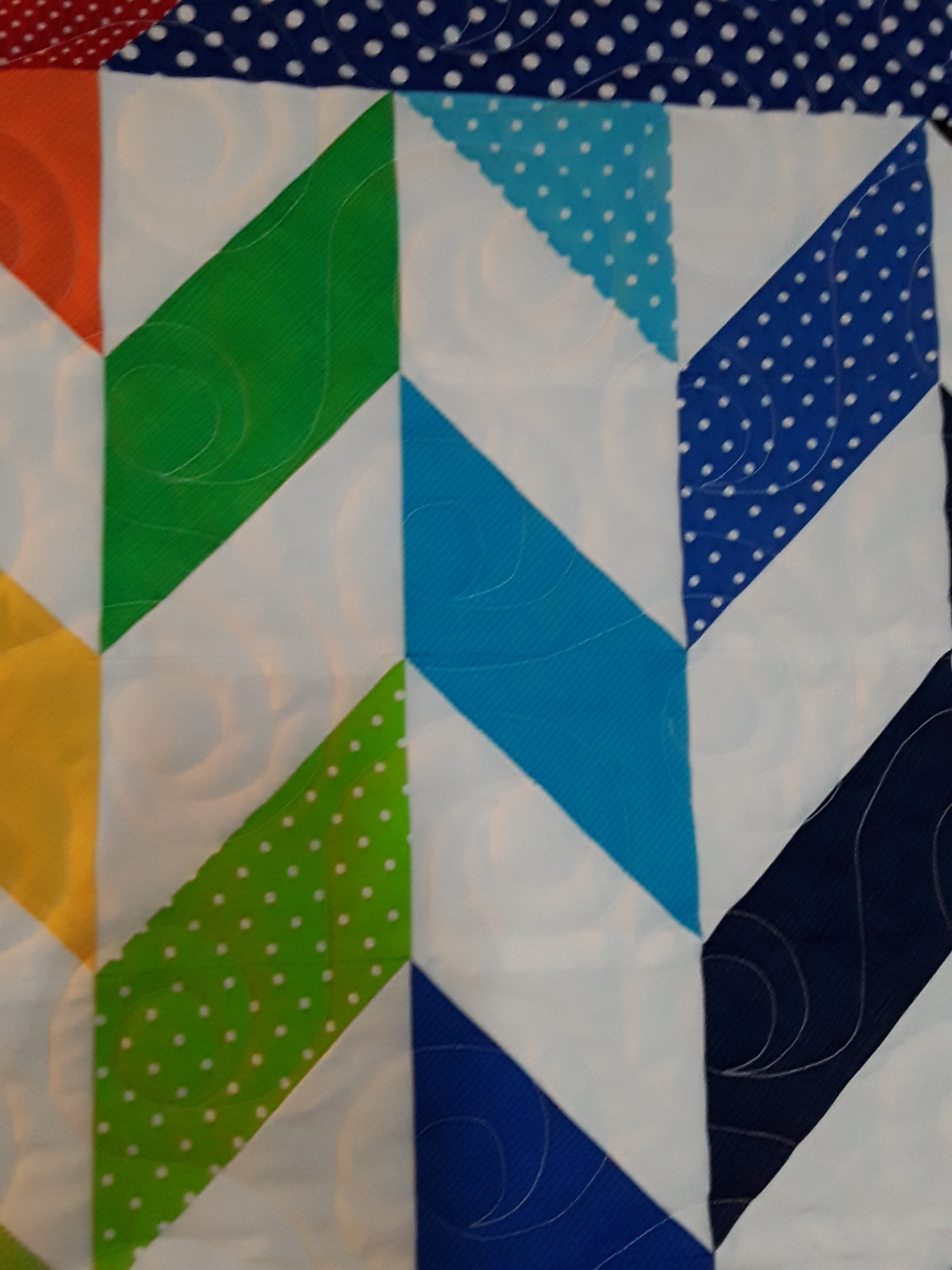 I used a polyester batting, not usually my go to. However, it really helps the quilting stand out. The pantograph I used is “Spiral Rings” by Irene Steele for Willow Leaf Designs.