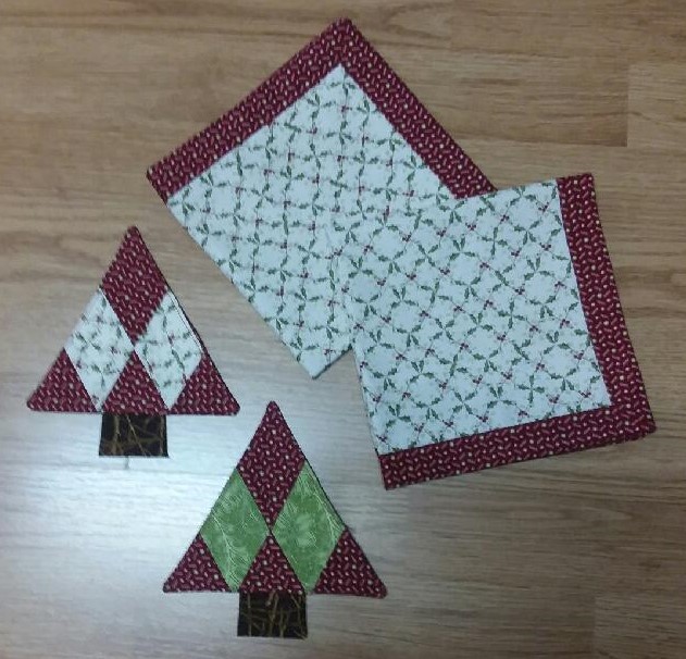 I LOVE bindings on quilts. I designed a tool for bindings, teach bindings and design quilts using my Brilliant Bindings tool. So….why bindings on a holiday prep hop?….How about back to front bindings? This is a great way to finish the edges of a placemat or …..use this same technique to make beautiful napkins to add to your holiday table. The photos below are from a class I taught last year on this technique and are my students’ beautiful results!! (Note the Winter Tree-Land coasters from Day 7!)