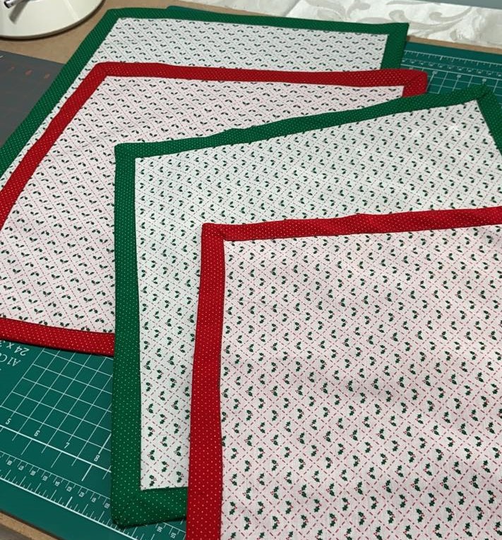 I have used a back to front binding on my mug rugs and placemats. Check out my “Four” Dinner or any other meal Placemats and Hexie Fun Placemats and Mug Rug patterns!