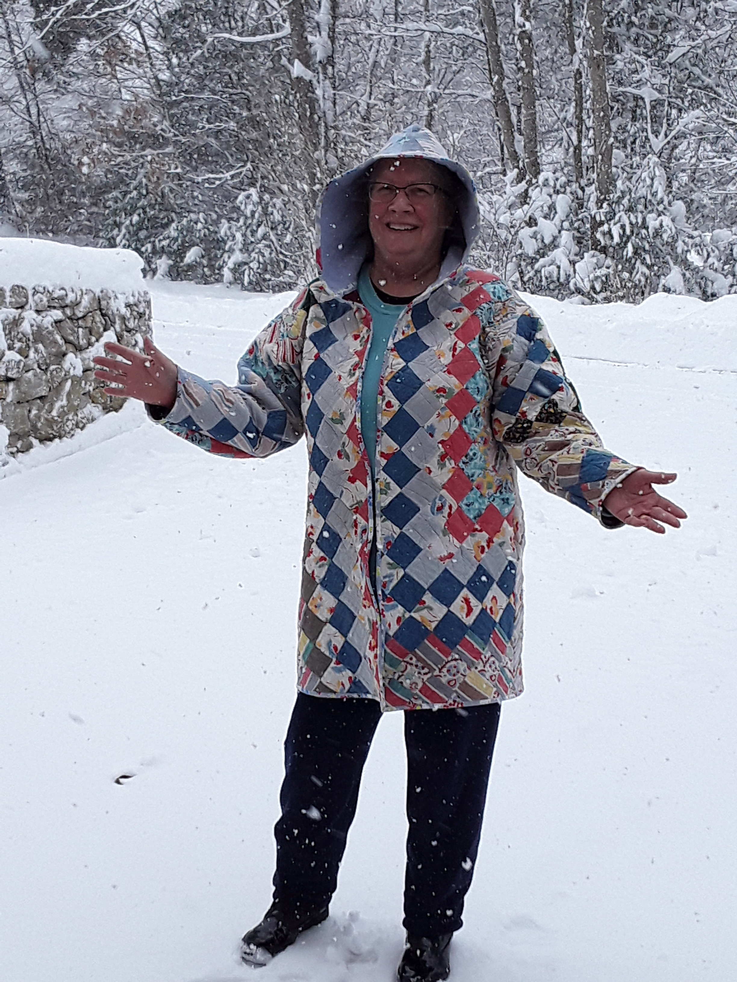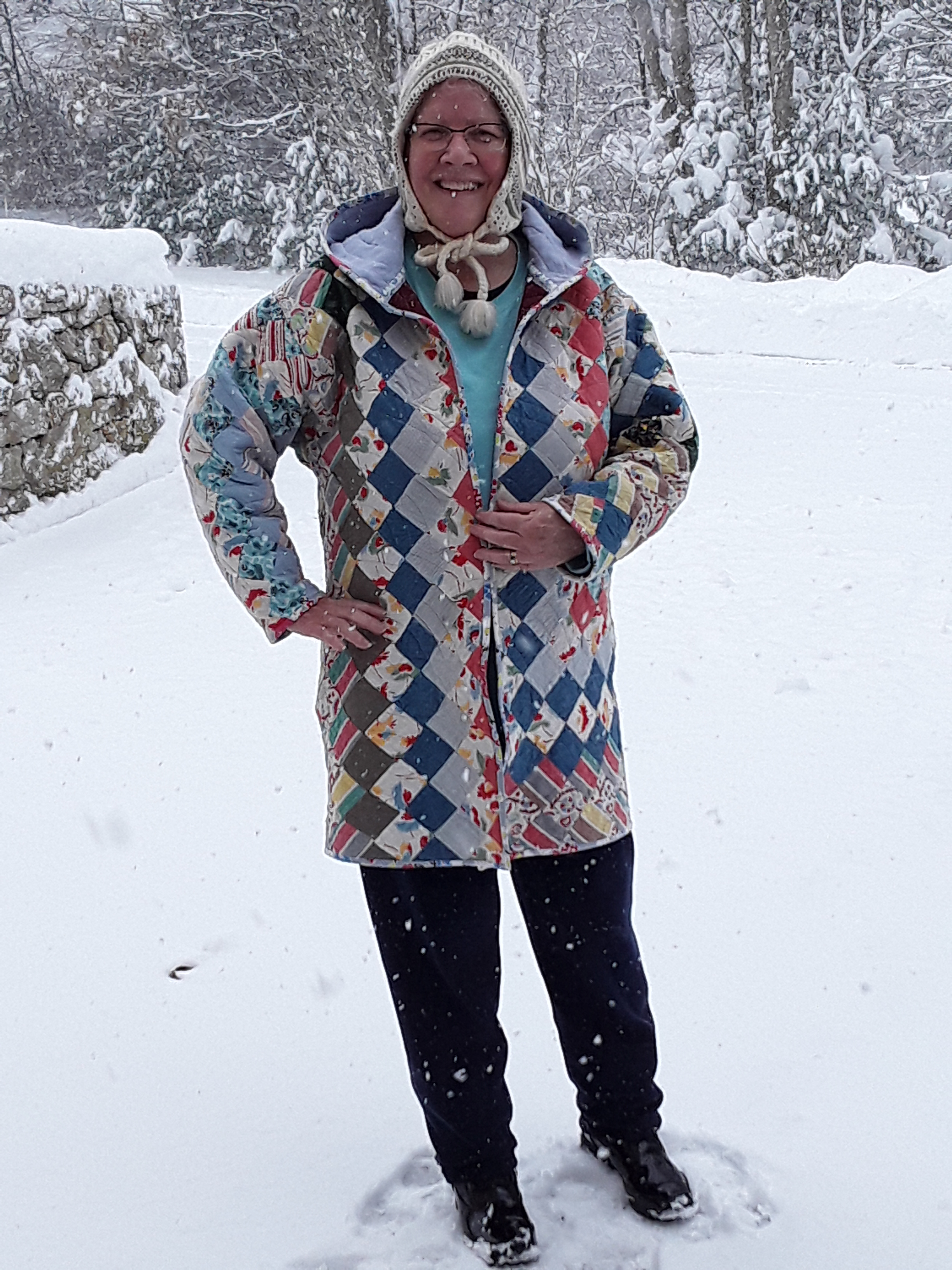 This past week we finally got snow! Yes! I love snow! 11″ to be exact. Several inches more than predicted but that is fine by me. Once we got the driveway clear, thanks to our snowblower, it was time to take some pictures. Just the day before I finished my Quilted Car Coat. I’m very pleased with how it turned out.
