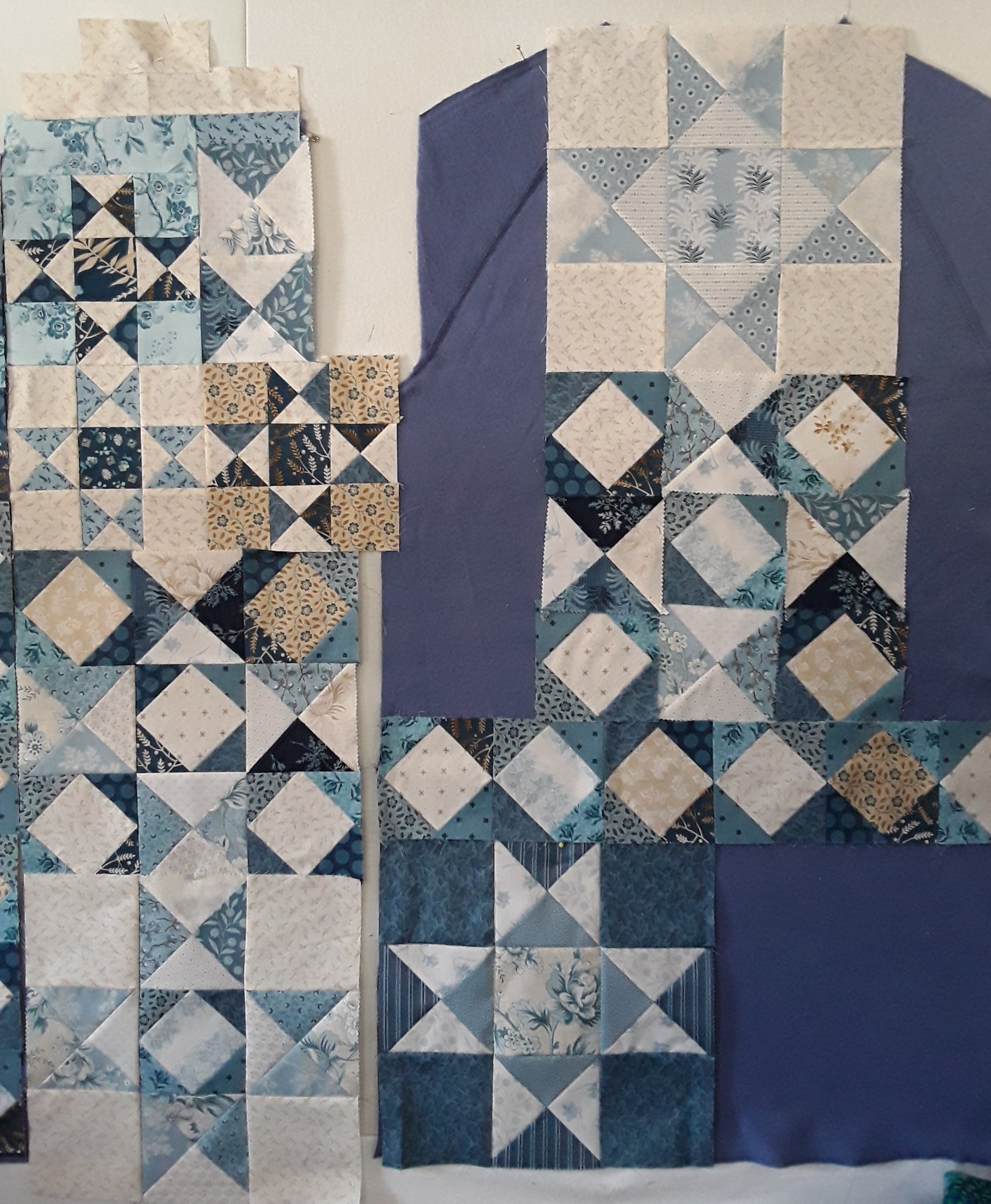 The Ohio Star Remix Reveal was yesterday. I have several Ohio Star blocks made and in several variations (remixes!). The blocks will be a part of my next quilted coat. I am making another for a machine quilting class I’m teaching on Saturday. I’ll show my progress below. I’m still playing with placement and possibilities.