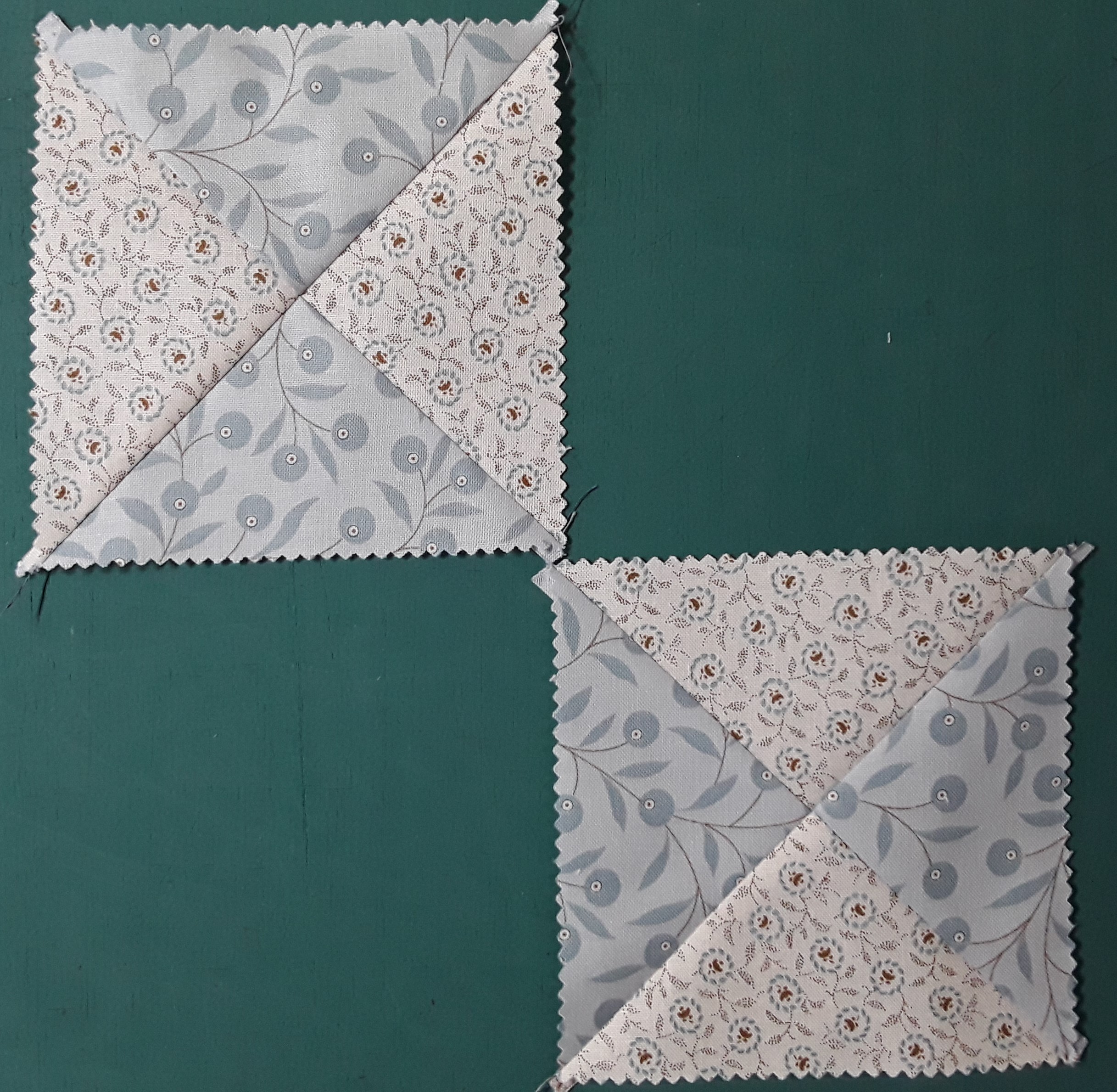 The easiest way to make a quarter square is putting 2 squares together and marking a center line from corner to corner. Then sewing on each side of the line from one corner to corner.