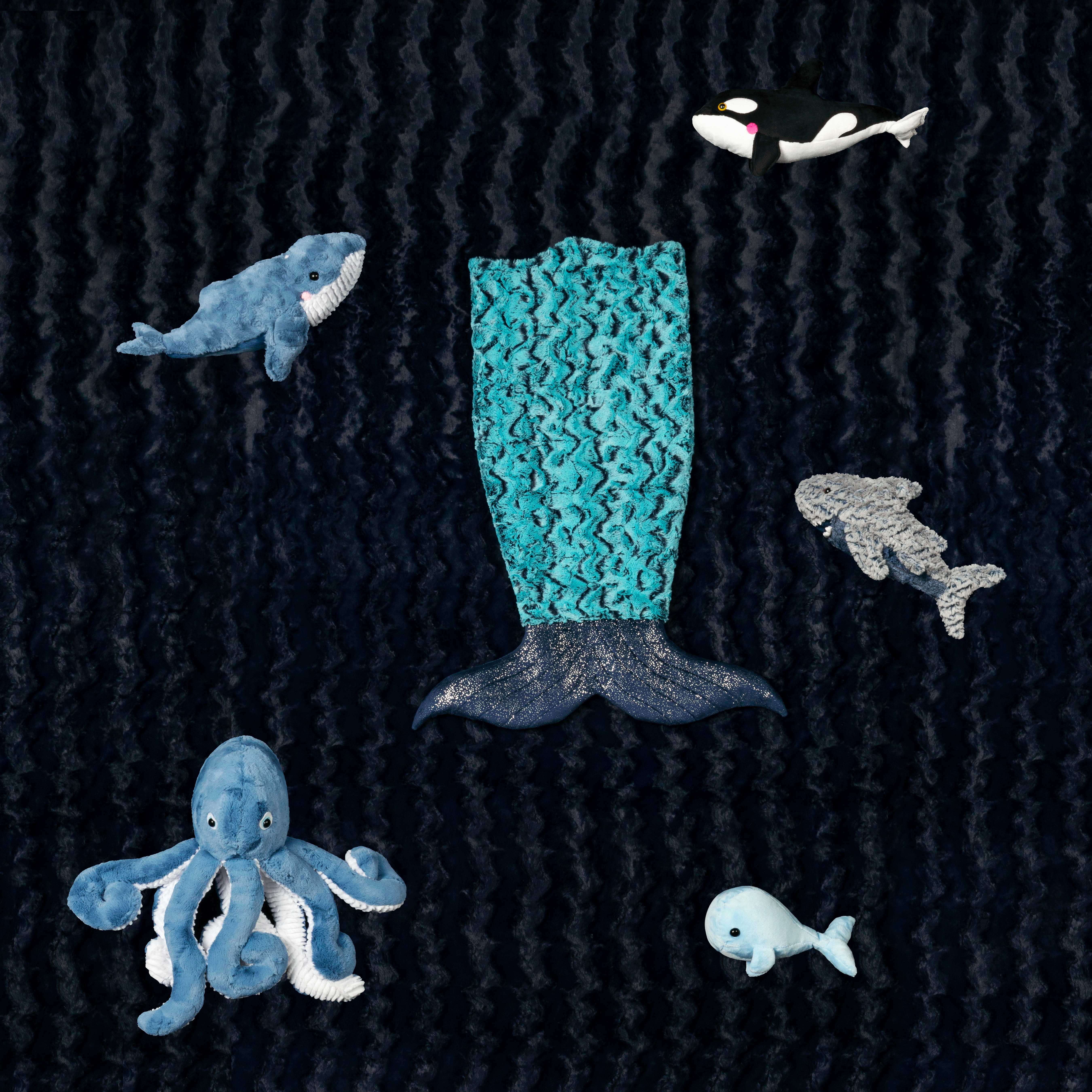 Next bit of news…. Shannon Fabrics and Teresa Coates, one of their National Educators will be hosting a Facebook Live Event showing how to make my Cuddle® Mermaid!! Cupcake Quilts in Texas will be hosting the event! I’m looking forward to joining in LIVE. I brought my Cuddle® Mermaid patterns with me if you get inspired! The photos below is a sneak peek of two tails made from some of Shannon Fabrics wonderful Cuddle® (the soft yummy “Minky” fabric). Aren’t those stuffed sea animals adorable hangin’ out with my Mermaid?!?