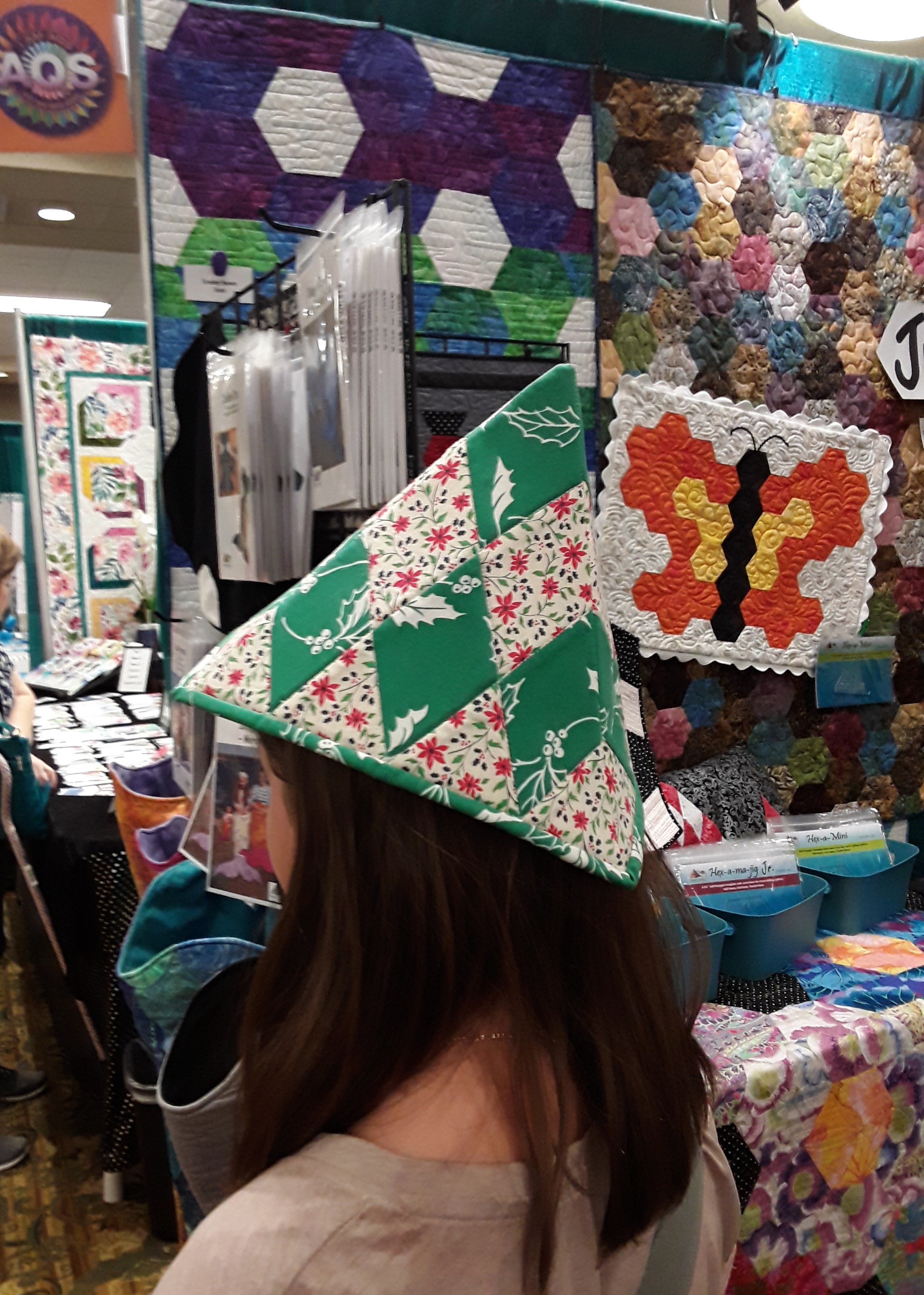 Carol and I set up the booth, I taught classes and we shared quilting stories with many of you. We looked for laughs and had a wonderful moment when a young quilter wore my Winter TreeLand became a hat!