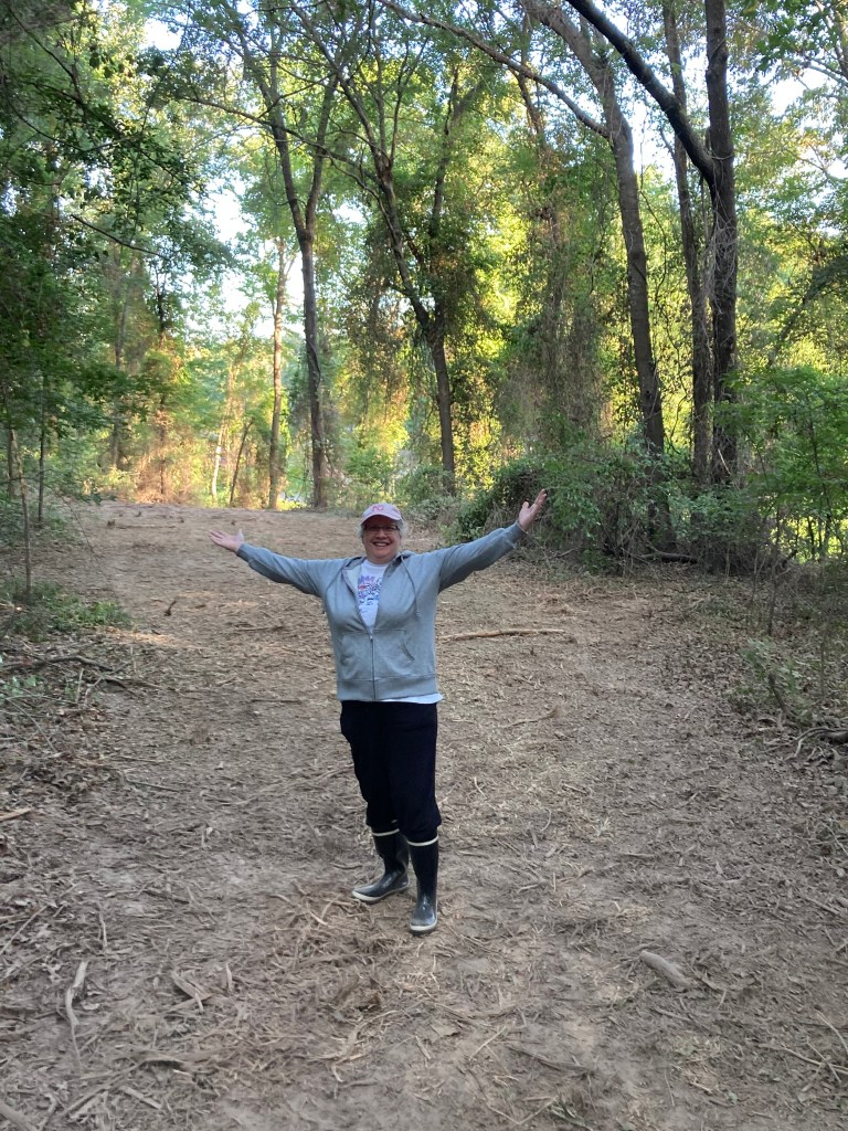 Well, how did that happen. I completely missed last week. I was on my way to Texas to take a look at our property we have had for over 27 years! And there I am in amongst the trees.