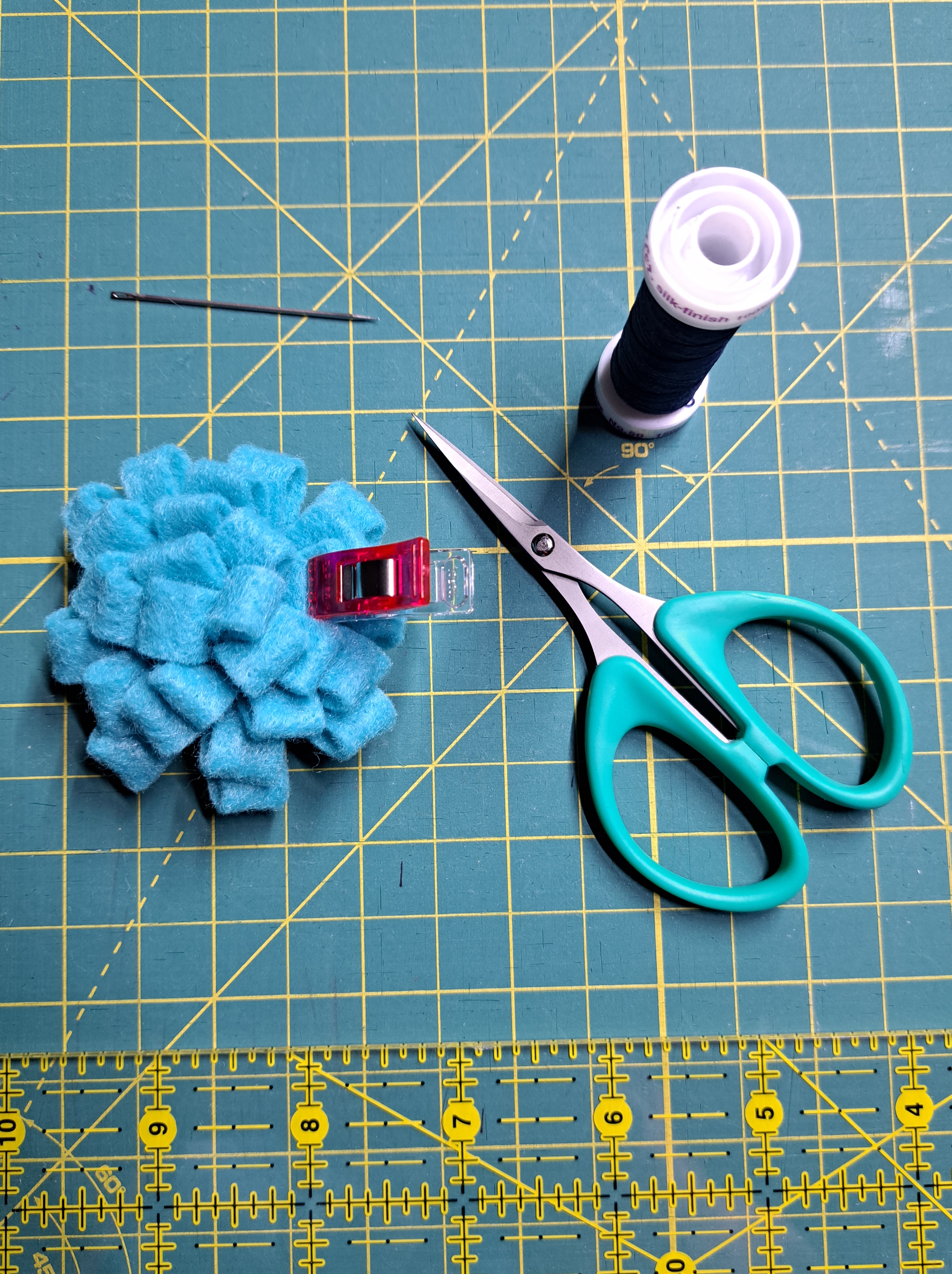 As promised last week, I have taken photos of the steps for making these cut felt flowers for holding clips. I love using clips when I do my bindings. Much easier to use than pins. I don’t get stuck!