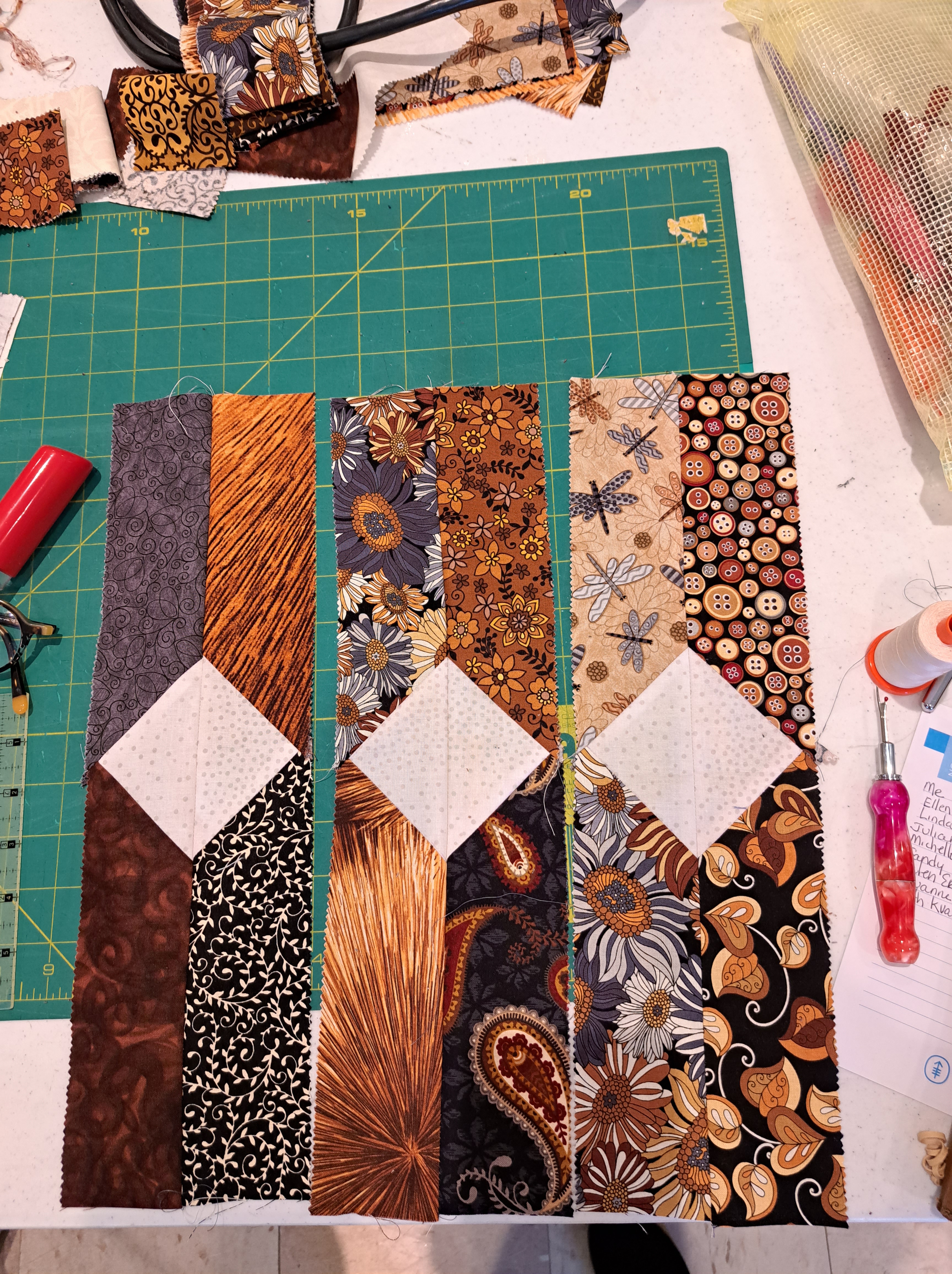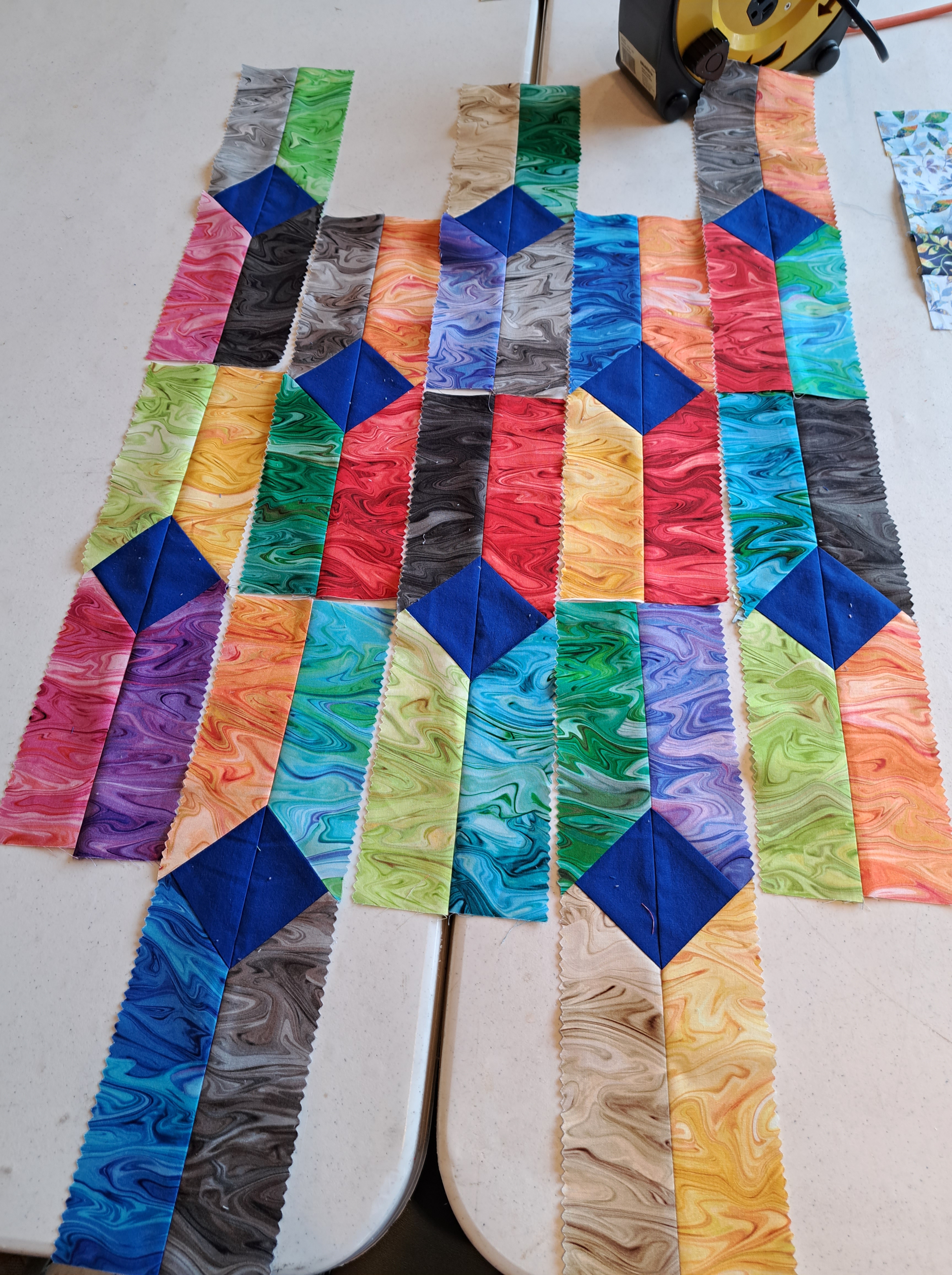 I’ll start with Michelle Young’s modeled brights…… We decided it best to wait until all her blocks were finished to do the arrangement. What a great start!