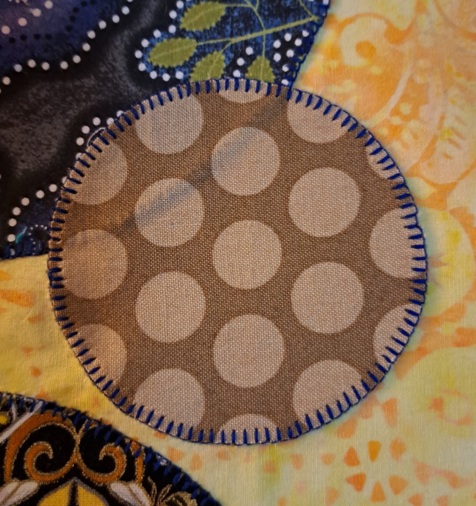 ……I do not (try not to!) stitch the buttonhole stitch under any section that will be covered by the top applique. I’m happier with the finished look and no raised can be seen! The steps of how I accomplished this is below. (on another layered section)